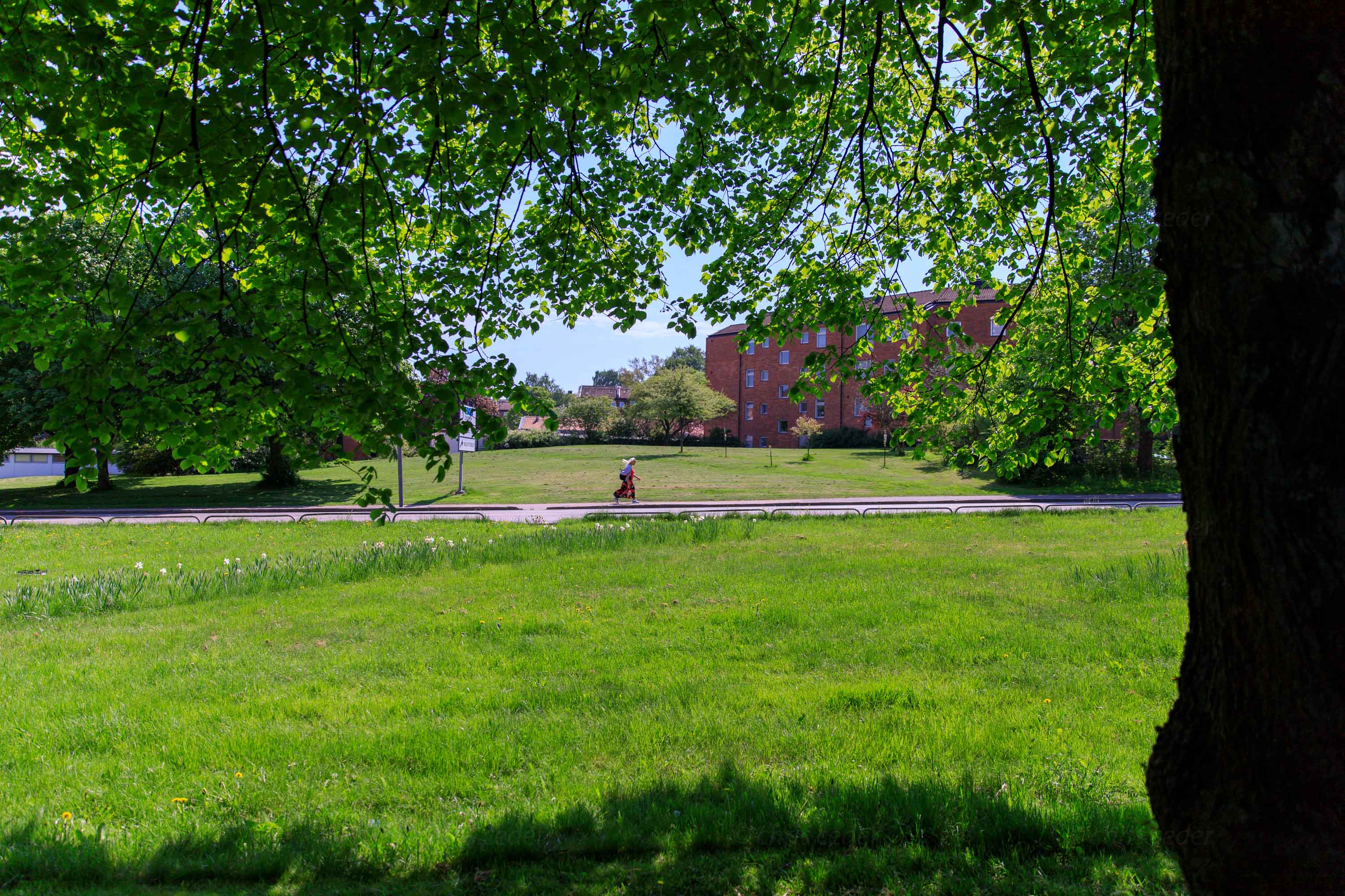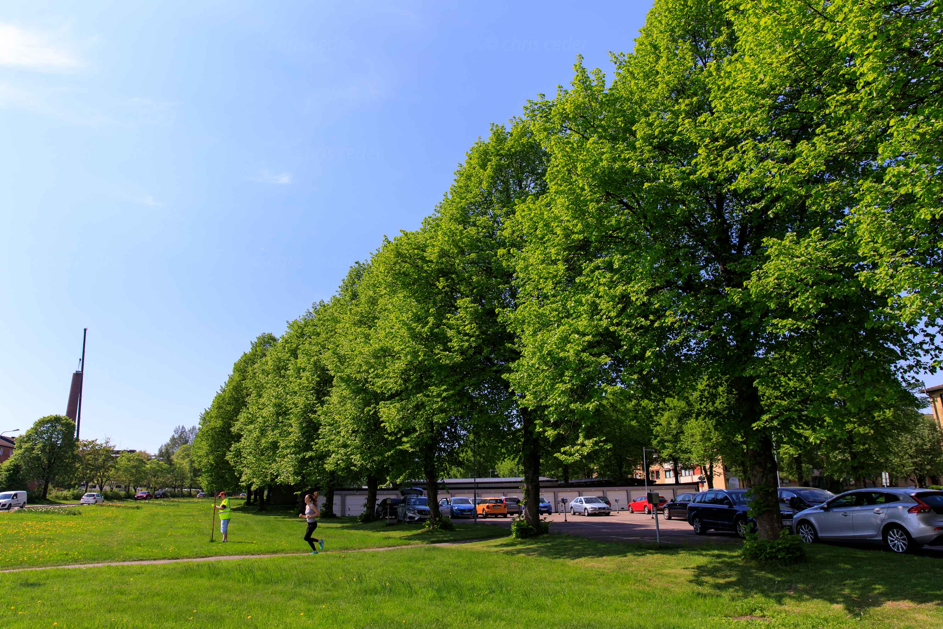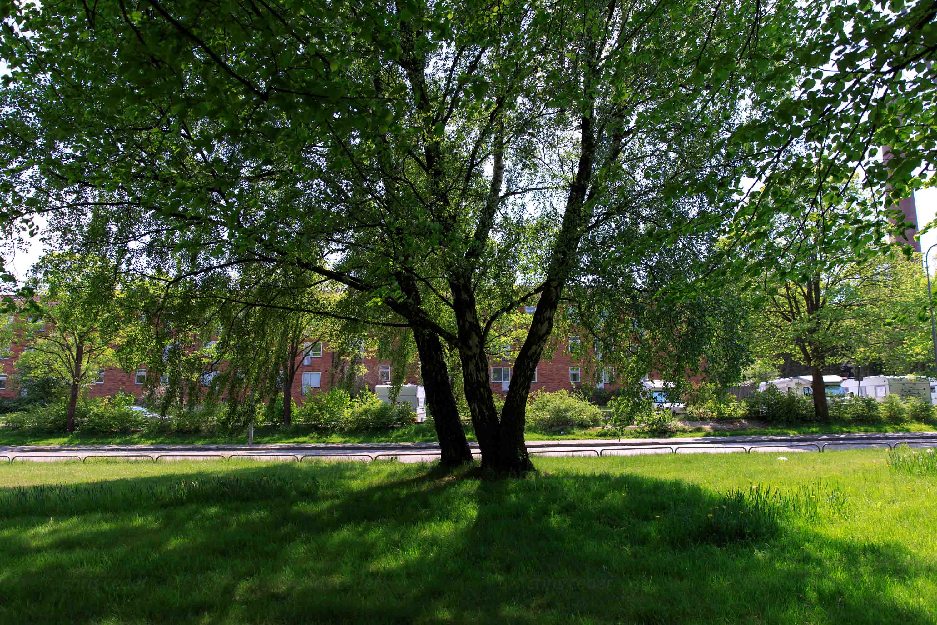 Kanske är det just de vackra alléerna i Flatås som skapar trygghet? Trädens svalkande skugga en så varm dag som denna, de härligt doftande bladen och den underbara fågelsången i den gröna mur av blad som skyddar djur och människor mot den giftiga, bullriga och intensiva trafiken på genomfartsgatan Marconigatan, kanske är det just dessa faktorer som minskar stress och oro och skapar trygghet?