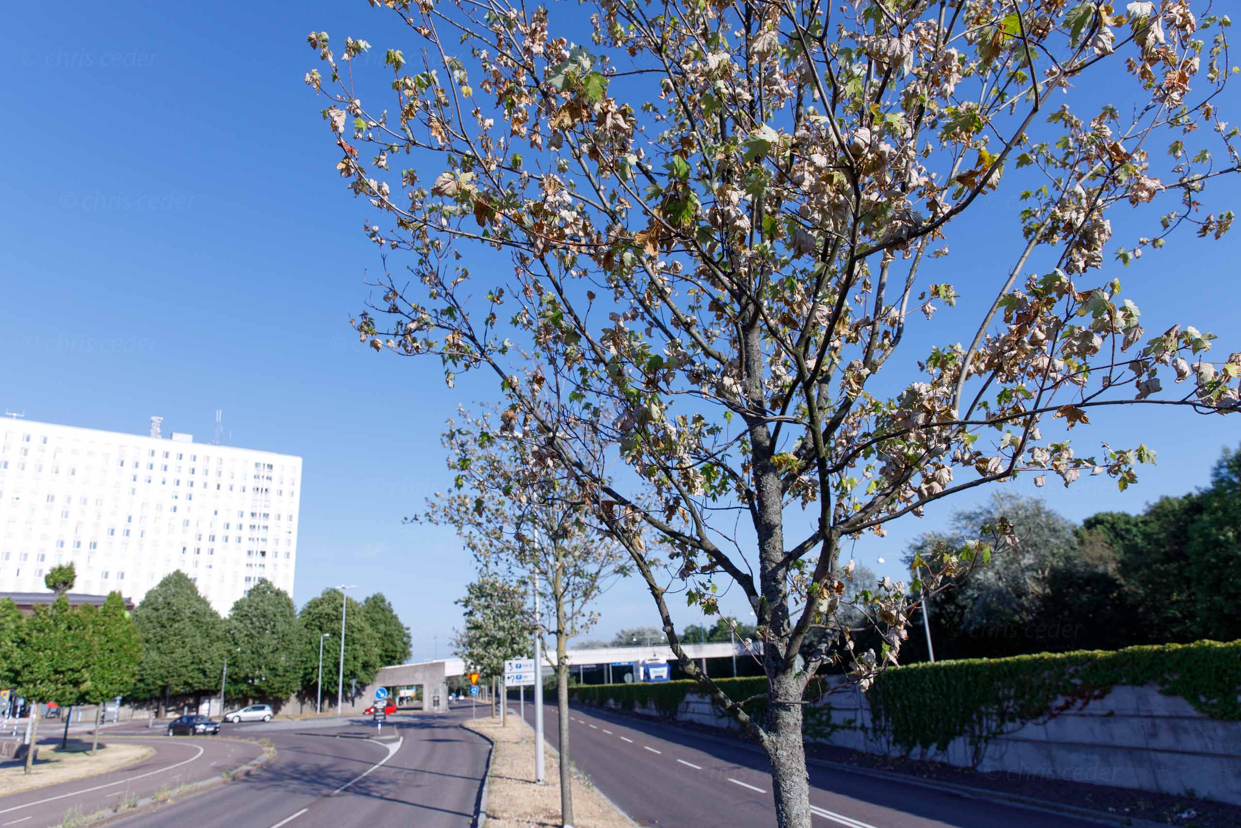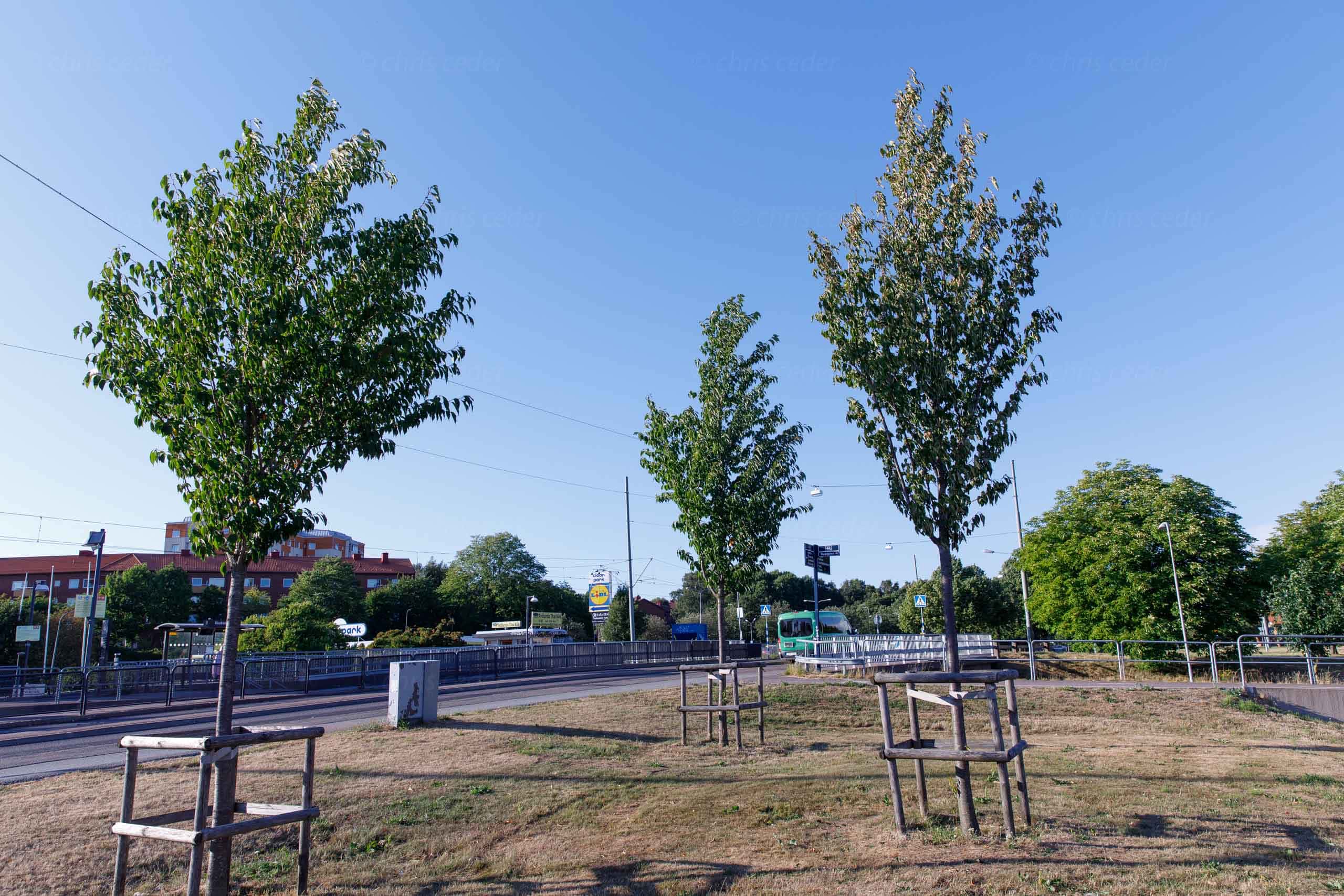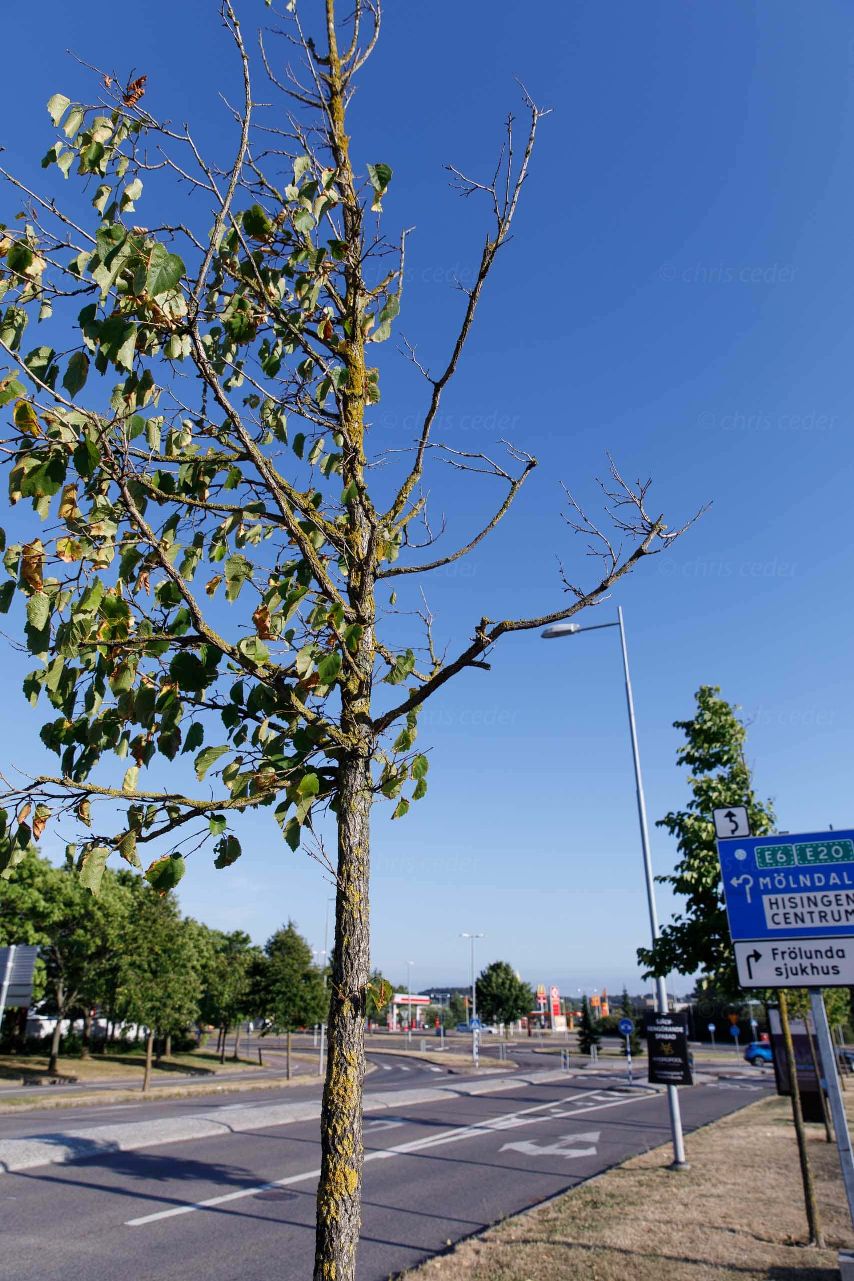 De nyplanterade träden, däremot, som sägs kompensera de gamla ser vi hur det går för när de lämnas vind för våg i torka och hetta: