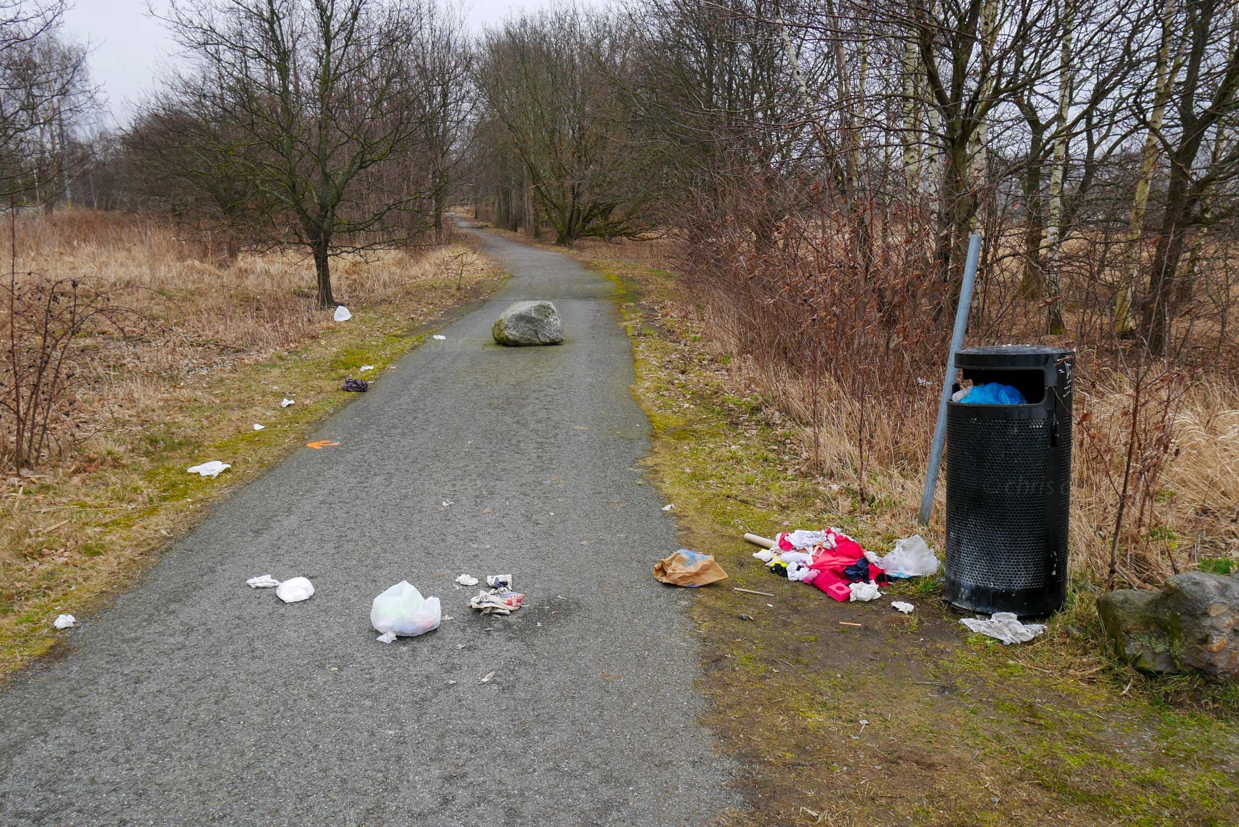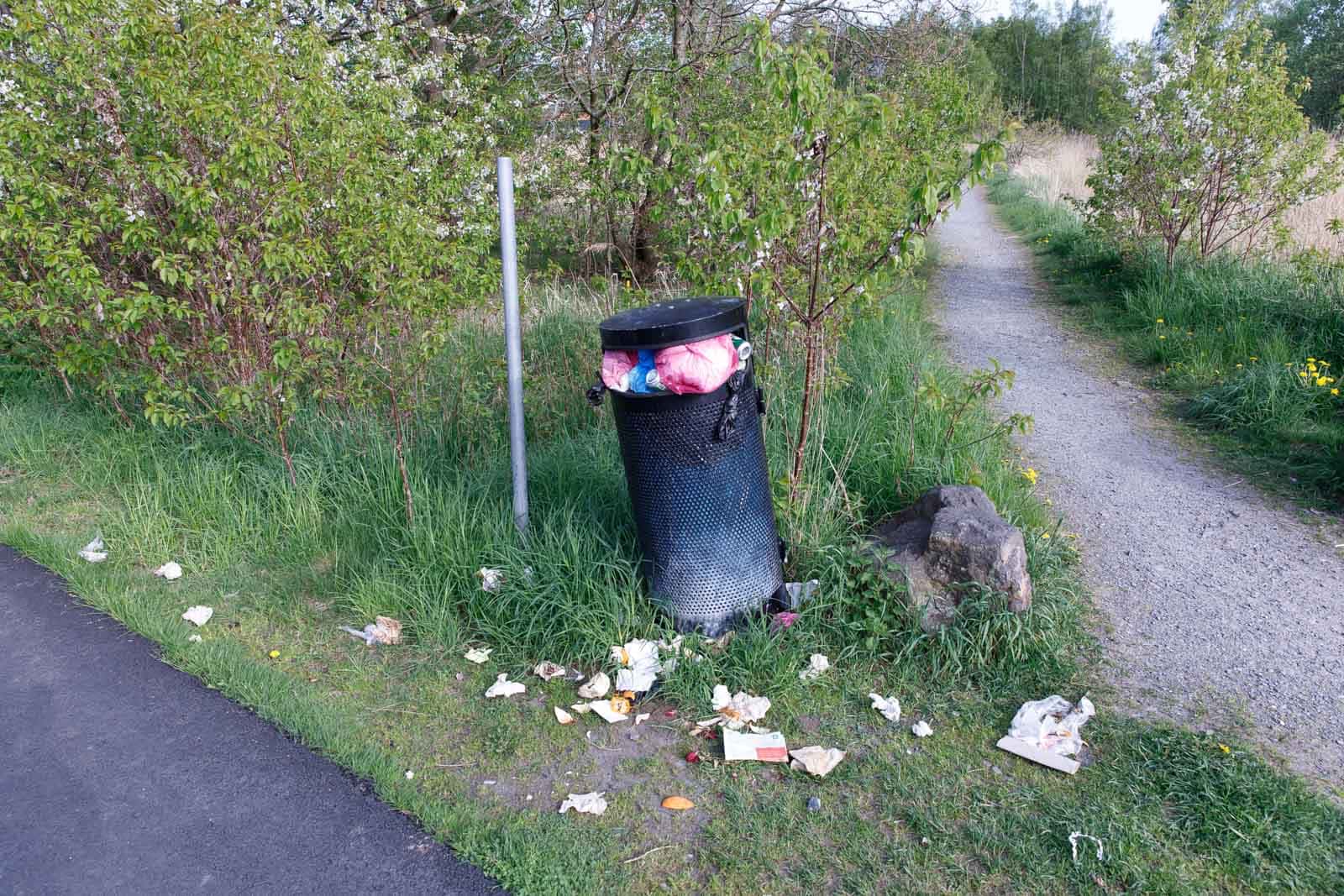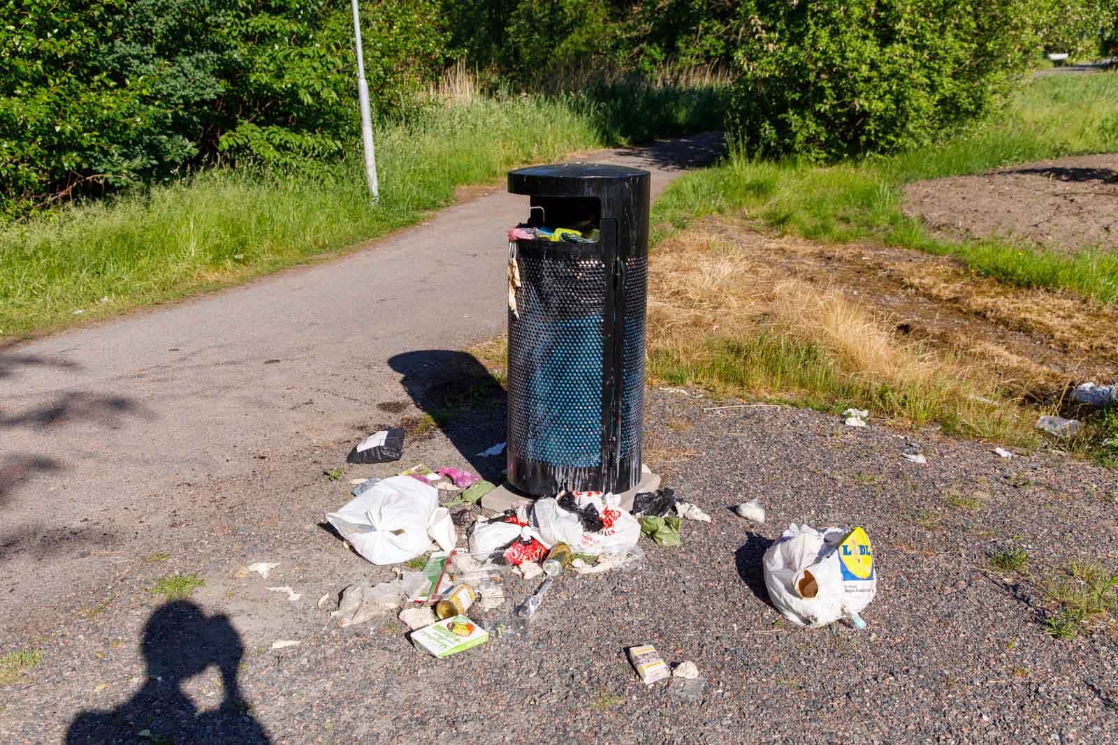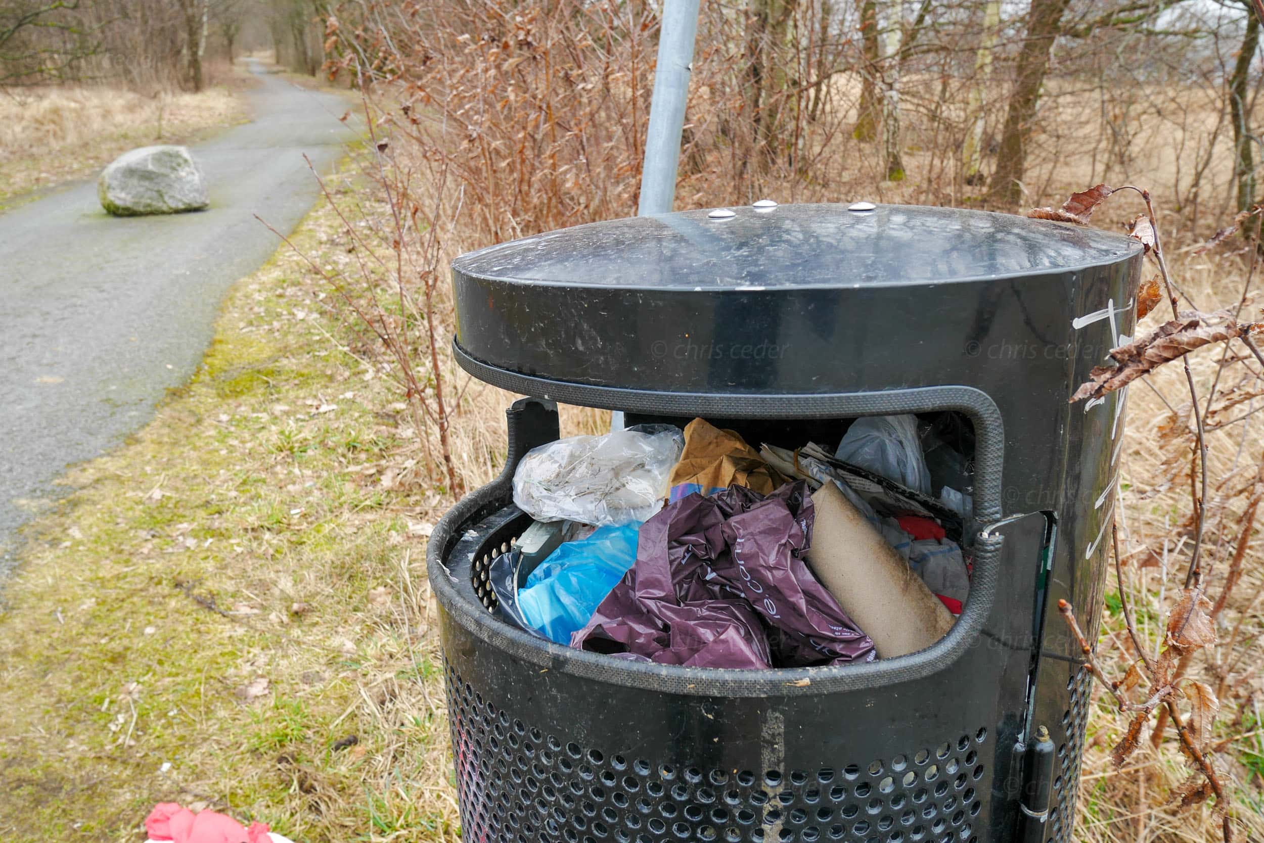 Jag ska avsluta med att berätta historien om bilden ovan, som jag tog i slutet av maj 2018 i Sandsjöbacka naturreservat vid Sisjön i Göteborg. I flera veckor hade högarna med avfall vuxit runt den enda soptunna som fanns i Göteborgs Stads del av Sandsjöbacka naturreservat vid Sisjön. I samma naturreservat, ett par hundra meter därifrån på andra sidan kommungränsen, också vid Sisjön, ligger Mölndals Stad. Vid sin del av Sisjön har Mölndal satt ut flera ordentliga soptunnor, som töms ofta. När det är varmt, som det var i maj 2018, kommer mycket människor för att bada i Sisjön. Med sig har de mat och dryck för att avnjuta på sin utflykt, servetter, plastmuggar, papptallrikar. När de kommer tillbaka från badplatsen vill de slänga sitt skräp i soptunnan. Förståeligt. Många ska åka hem med bussen och vill inte ta med sig avfallet ombord. Denna enda tunna som fanns i Göteborgs Stad slutades dock att tömmas i maj 2018 – enligt uppgifter kom entreprenören inte längre och tömde skräpet av någon anledning. Göteborgs Stad, som har hand om avfallshanteringen, bekymrade sig dock inte över den sanitära olägenheten och riskerna för vilda djur i naturreservatet och lät i veckor sophögarna växa runt soptunnan trots klagomål. Den officiella förklaringen från kommunen var en helt annan. En tid efter att jag fotograferade den vedervärdiga synen runt den överfulla soptunnan var den borta. Ett plakat satt uppsatt på en anslagstavla:
