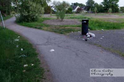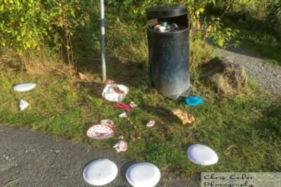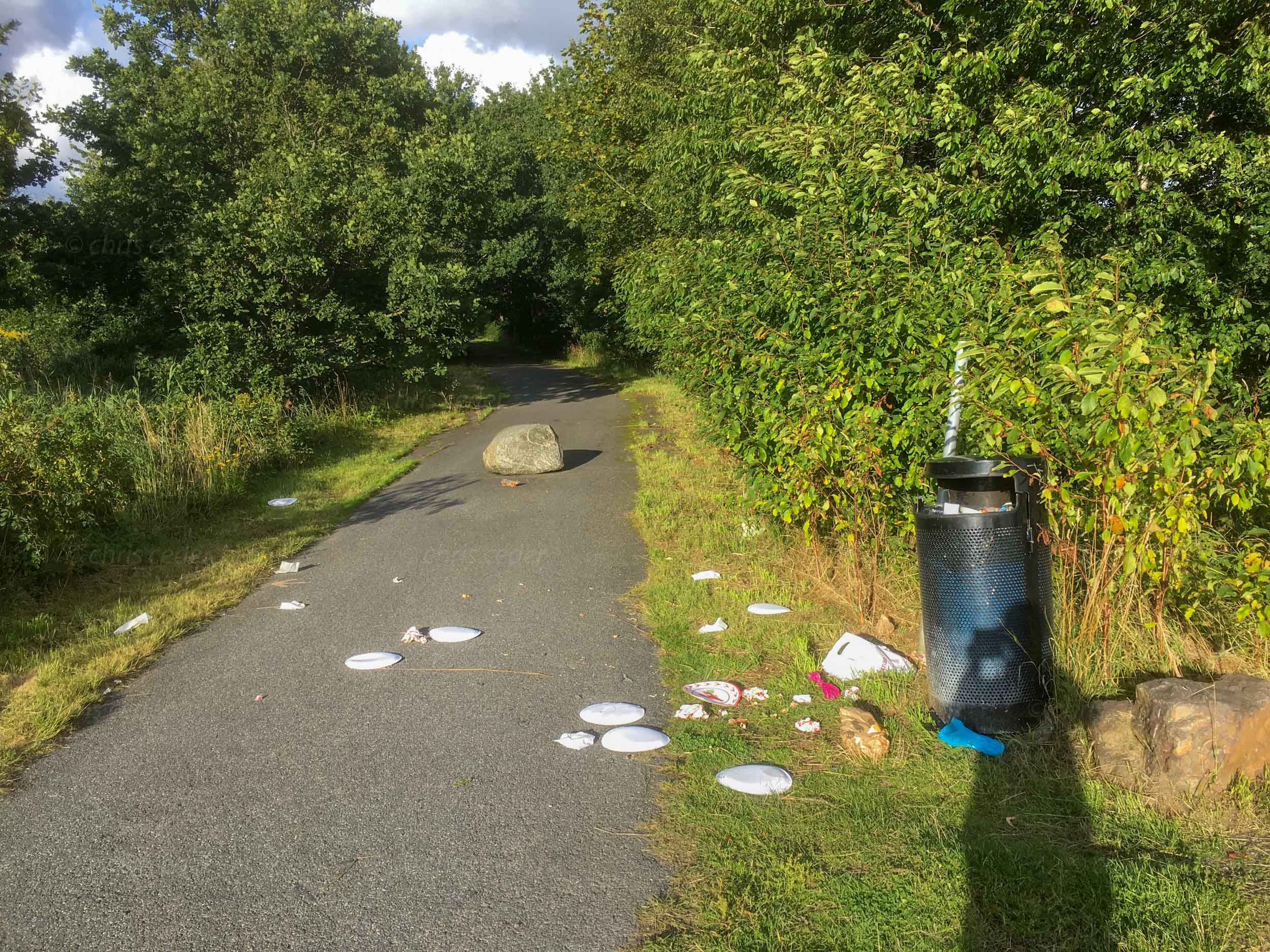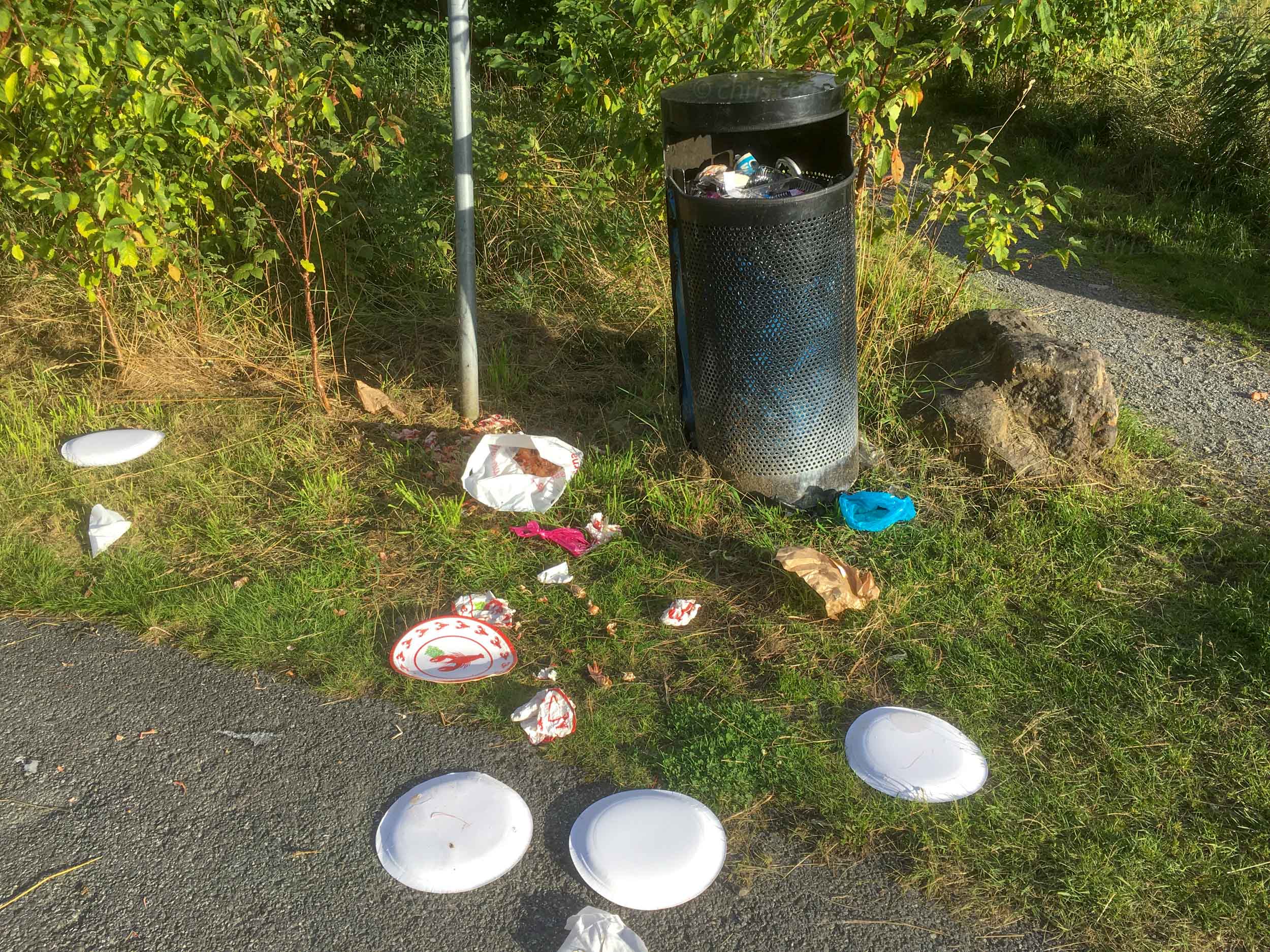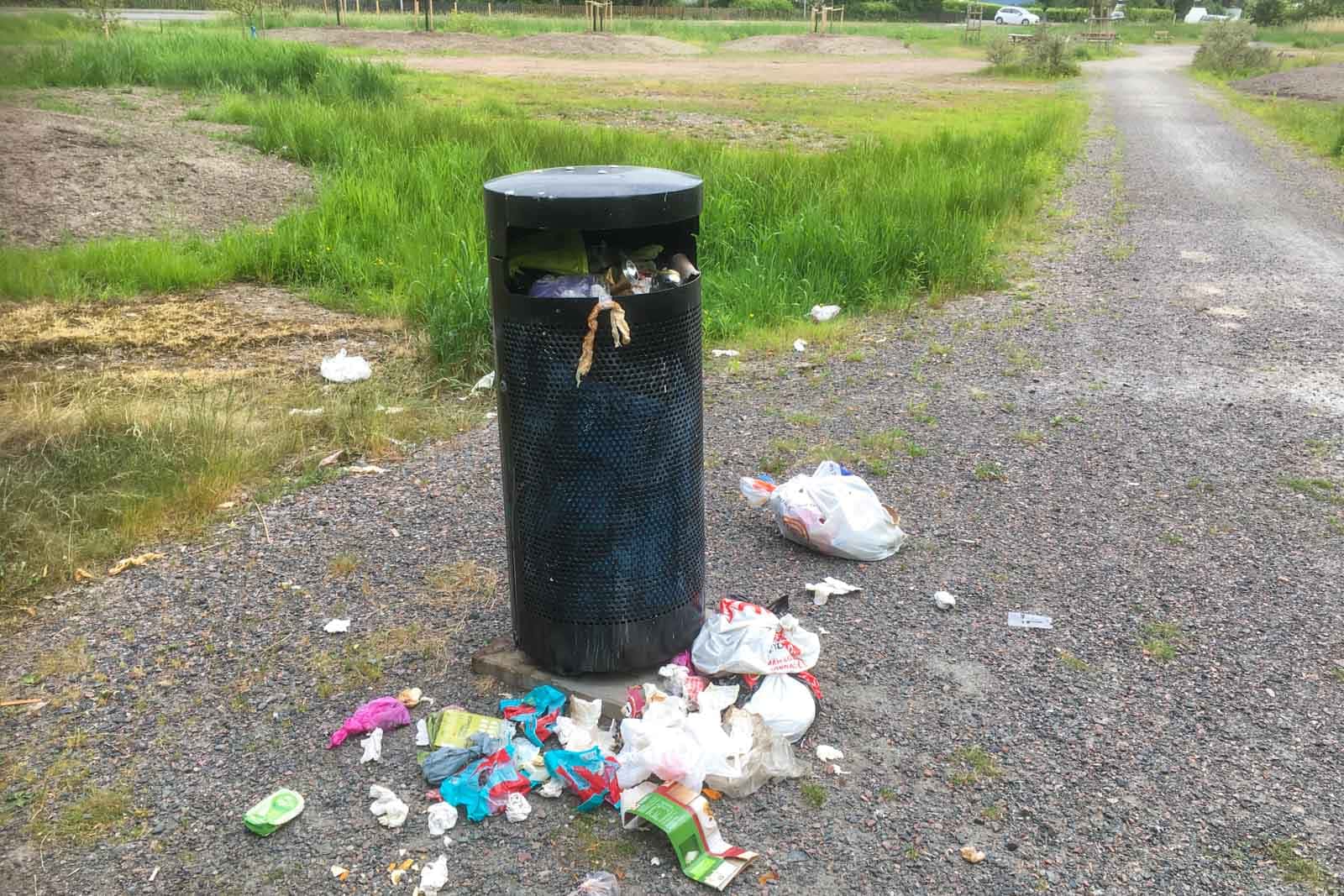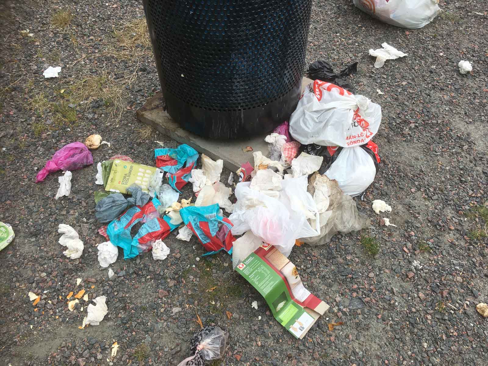 Jag ska avsluta med att berätta historien om bilden ovan, som jag tog i slutet av maj 2018 i Sandsjöbacka naturreservat vid Sisjön i Göteborg. I flera veckor hade högarna med avfall vuxit runt den enda soptunna som fanns i Göteborgs Stads del av Sandsjöbacka naturreservat vid Sisjön. I samma naturreservat, ett par hundra meter därifrån på andra sidan kommungränsen, också vid Sisjön, ligger Mölndals Stad. Vid sin del av Sisjön har Mölndal satt ut flera ordentliga soptunnor, som töms ofta. När det är varmt, som det var i maj 2018, kommer mycket människor för att bada i Sisjön. Med sig har de mat och dryck för att avnjuta på sin utflykt, servetter, plastmuggar, papptallrikar. När de kommer tillbaka från badplatsen vill de slänga sitt skräp i soptunnan. Förståeligt. Många ska åka hem med bussen och vill inte ta med sig avfallet ombord. Denna enda tunna som fanns i Göteborgs Stad slutades dock att tömmas i maj 2018 – enligt uppgifter kom entreprenören inte längre och tömde skräpet av någon anledning. Göteborgs Stad, som har hand om avfallshanteringen, bekymrade sig dock inte över den sanitära olägenheten och riskerna för vilda djur i naturreservatet och lät i veckor sophögarna växa runt soptunnan trots klagomål. Den officiella förklaringen från kommunen var en helt annan. En tid efter att jag fotograferade den vedervärdiga synen runt den överfulla soptunnan var den borta. Ett plakat satt uppsatt på en anslagstavla: