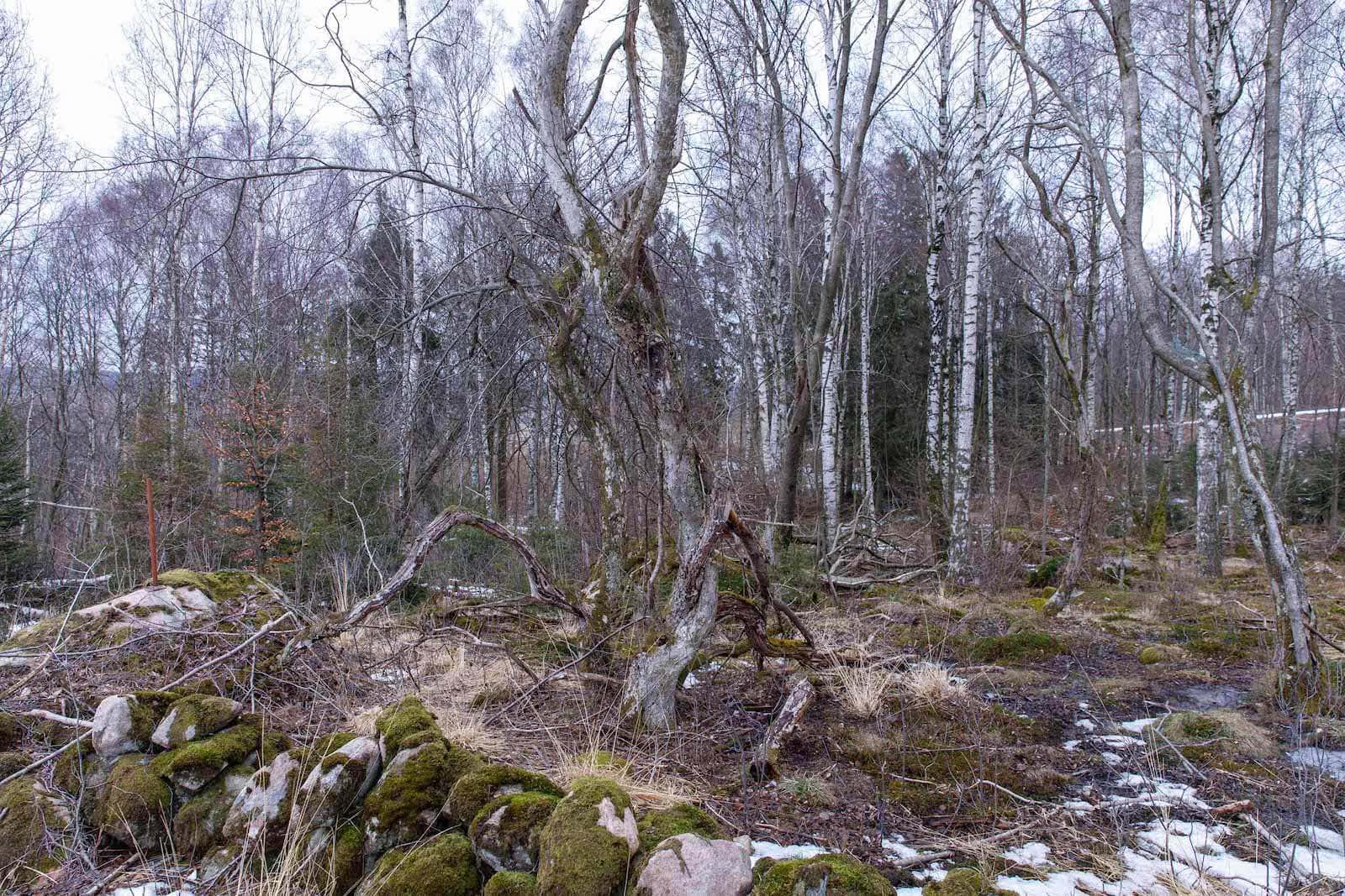 Trots att fornminnena mestadels bevarats har platserna mist sin stillhet och den evighetskänsla de inger. Idag står tjugohundratalets fyrkantiga nyfunkiskolosser och kastar postmodernismens iskalla skugga över dem gamla boplatserna, som tidigare varit mystiskt inbäddade i den trolska lövskogen. Naturstigen och stengärdesgården som gått genom lummig lövskog är idag kantad av Stena Fastigheters åttavåningsmonoliter och en smal strimma rangliga och omkullfallna björkar vars jordmån förlorat sin hållfasthet när allt runtomkring kalhöggs och skövlades. (Texten fortsätter under bildspelet)