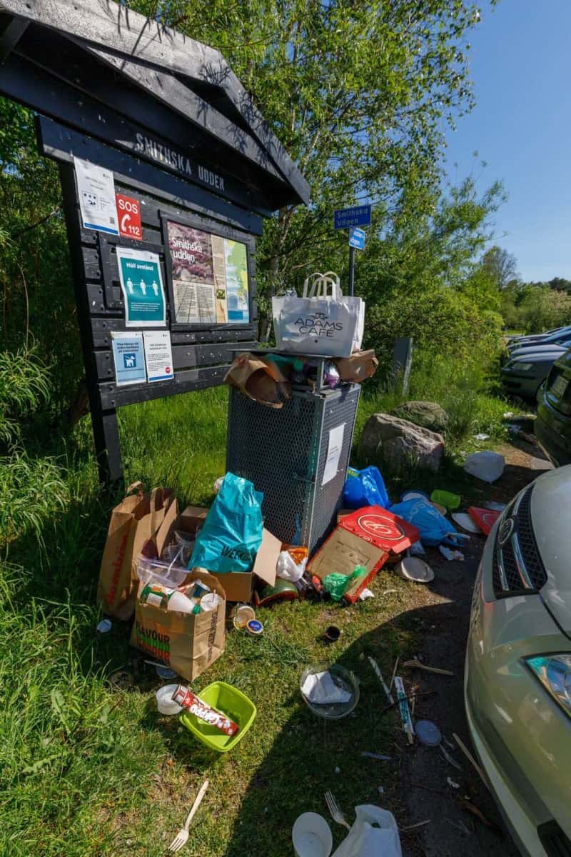 Fyra rejäla soptunnor med sortering och en bredvid en “sopbox” av tysk modell hade hanterat skräpmängden utan några som helst problem, är betydligt billigare än inköp av Big belly och det hade sett trevligt och fräscht ut vilket skulle uppmuntra folk att inte lämna skräpmängder kvar på klipporna, också eftersom de vet att soptunnorna är fulla. Så resonerar många även om det är fel!