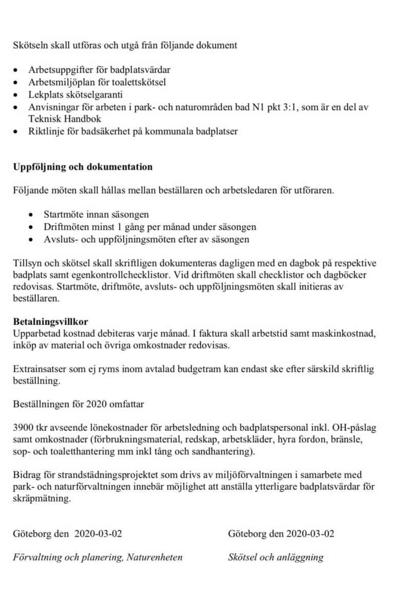 Det är på helgerna badplatserna i Göteborg behöver städning som mest – men att döma av ett par bilder jag fått av biologen Gunnar Antonsson hade ingen städat bort ett sopberg på Smithska udden, som irriterat många besökare i sommar och tidigare år, under hela den gångna helgen trots att badplatsen är en av ett drygt dussin i Göteborg som städas dagligen enligt handlingar jag begärt ut från Park- och naturförvaltningen. Årsbudgeten för att hålla rent badplatserna, framför allt i sommar, är inte direkt liten: 3,9 miljoner kronor. På Näset och Smithska udden är det Göteborgs Stad som själva utför skötseln.