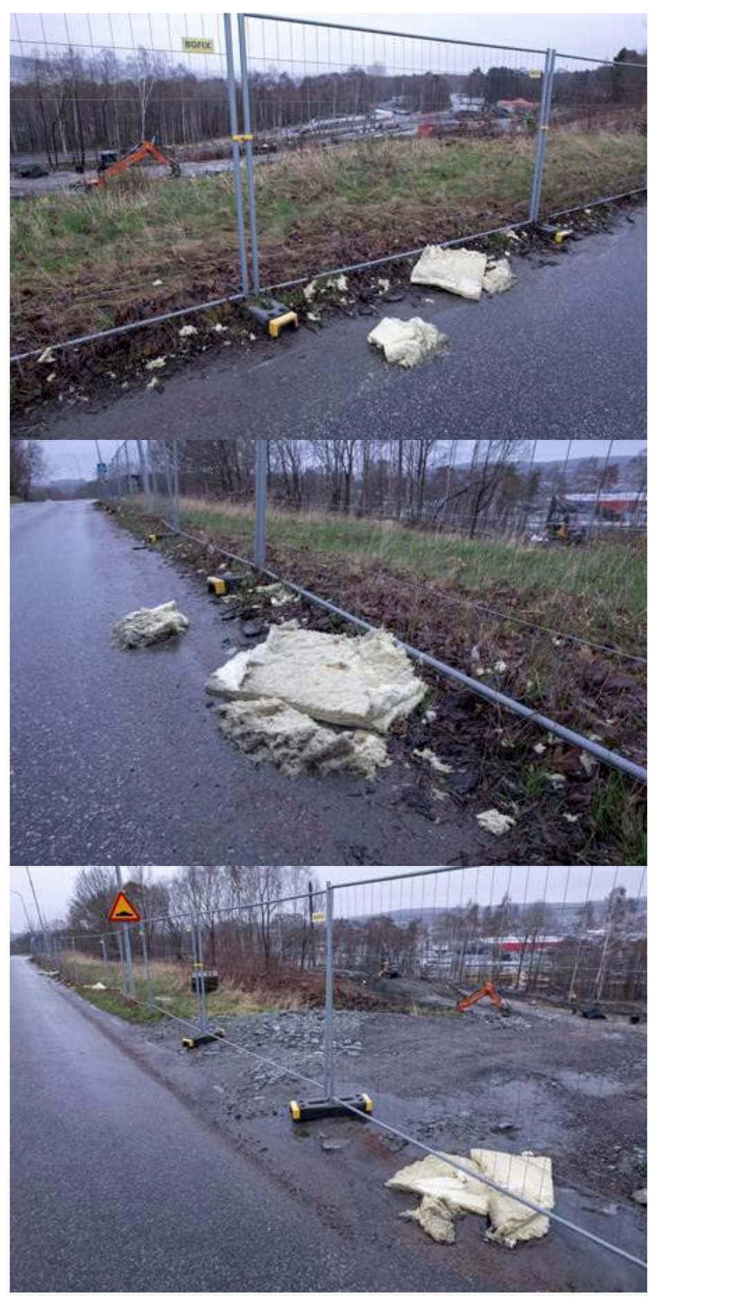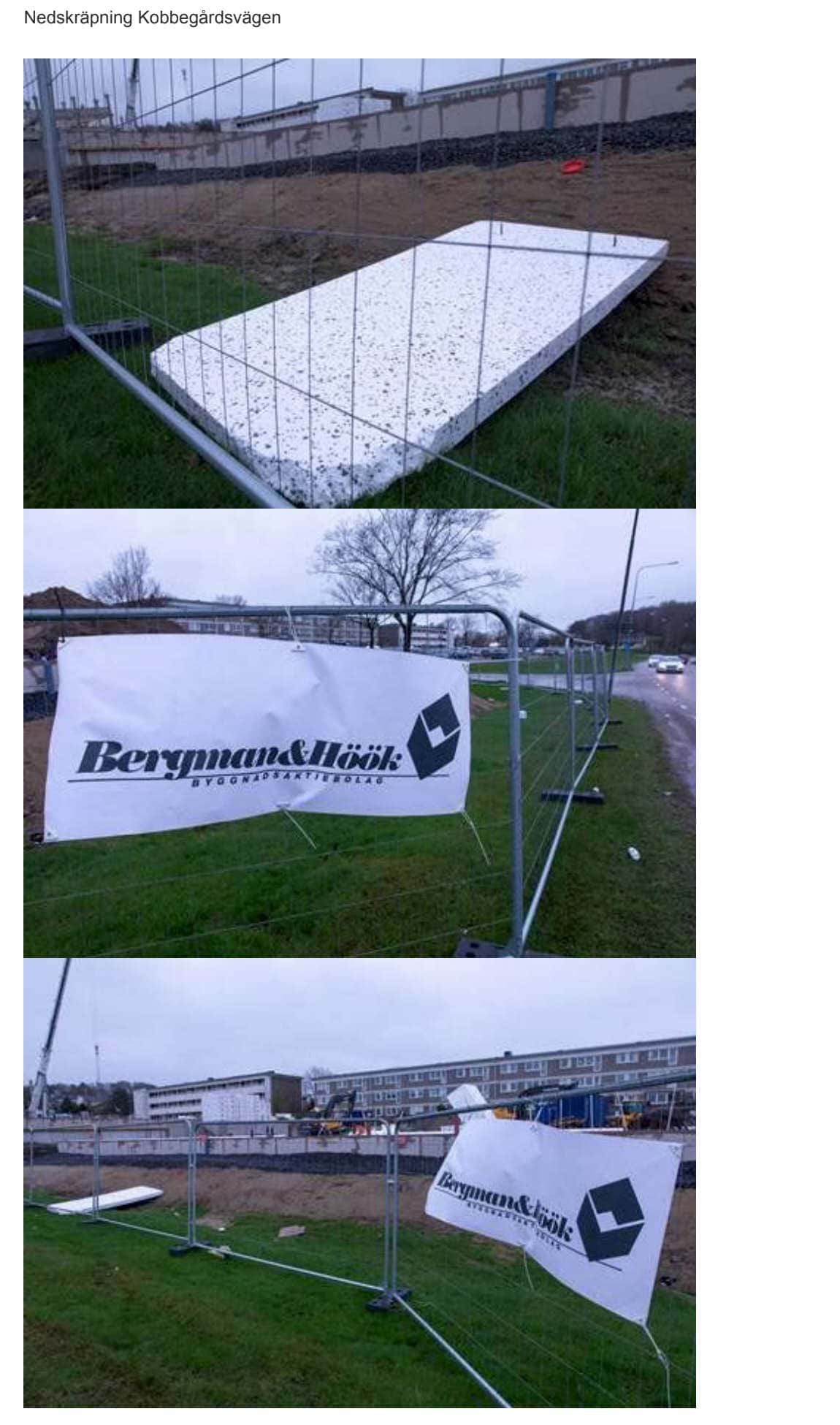 Vid båda mina besök vid arbetsplatsen fotograferade jag och jag har i denna artikel lagt upp bilderna före min anmälan och efter det att nedskräpningen enligt Miljöförvaltningen blivit uppstädad och åtgärdad. Ända ner vid Askims IK:s klubbstuga, flera hundra meter ifrån byggarbetsplatsen, hittade jag halvmeterstora frigolitbitar. Frigoliten var identisk med den typen av frigolitblock och bitar som låg på Bergman & Hööks arbetsplats innanför byggstängslet. Det kunde man lätt se på att frigoliten inte var helt vit utan att vissa av de små kulorna var svartfärgade.