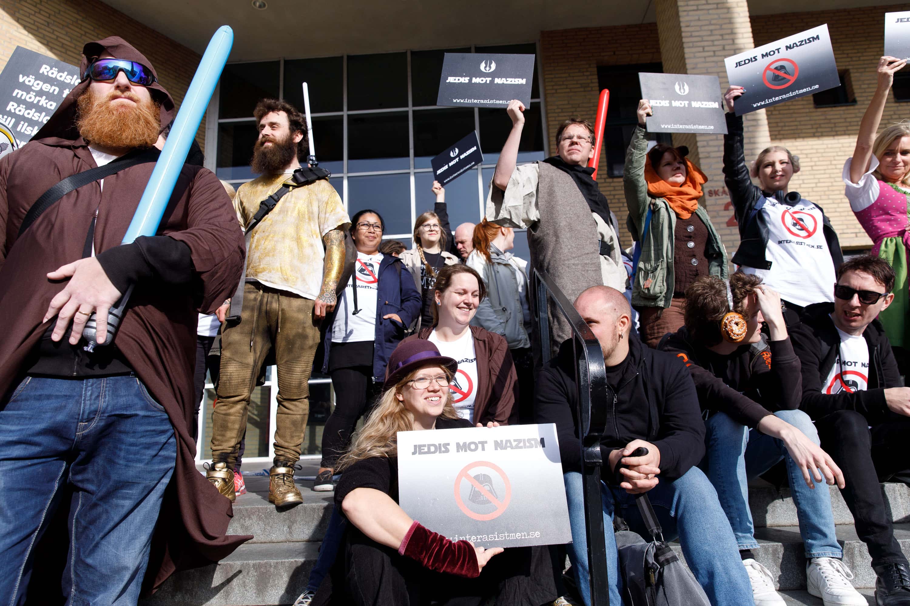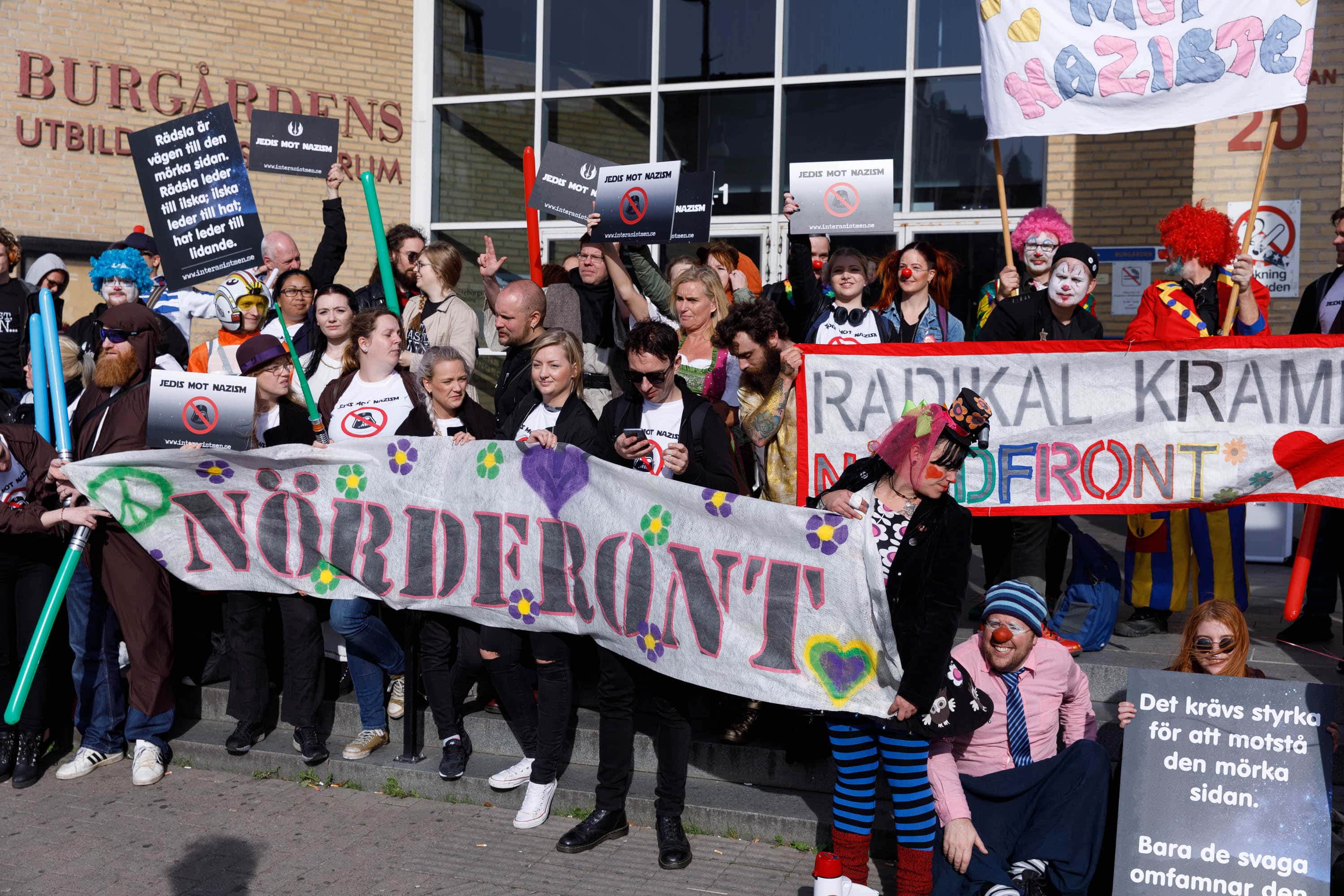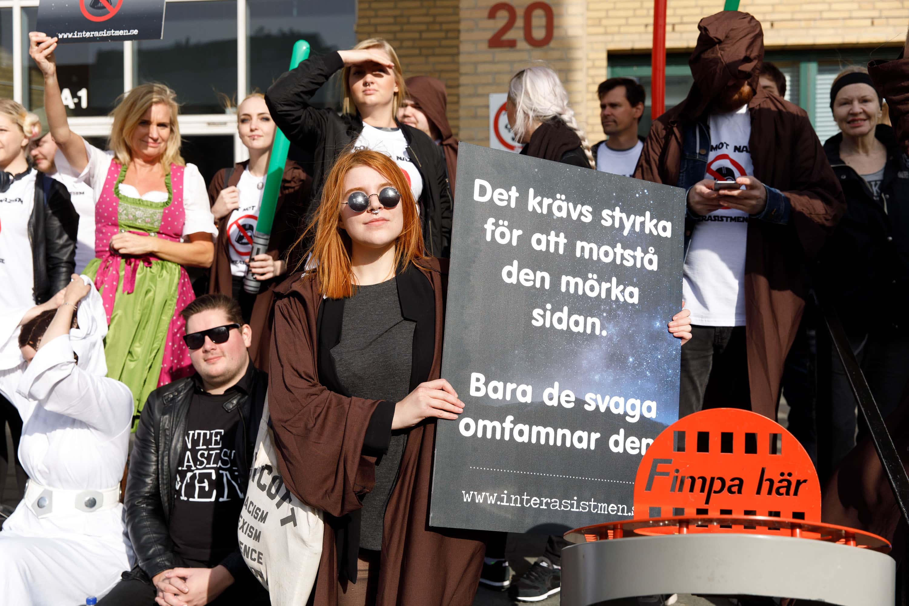 Under lördagen hölls ett dussintal olika demonstrationer mot nazistdemonstrationen i Göteborg. Vid Scandinavium samlades färgglada demonstranter under motton som “clowner mot nazister”, “jedis mot nazism” och “Nördfront”.