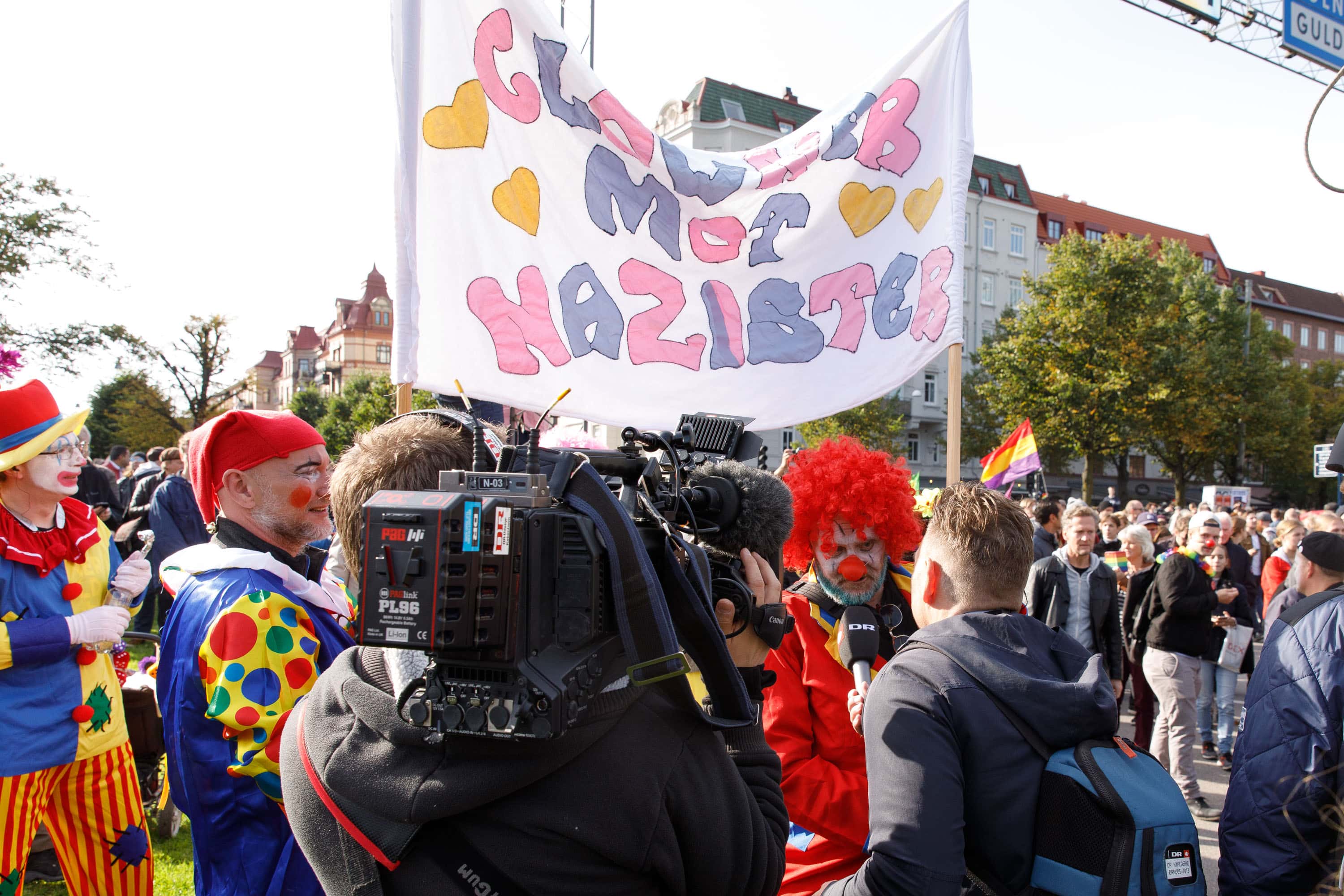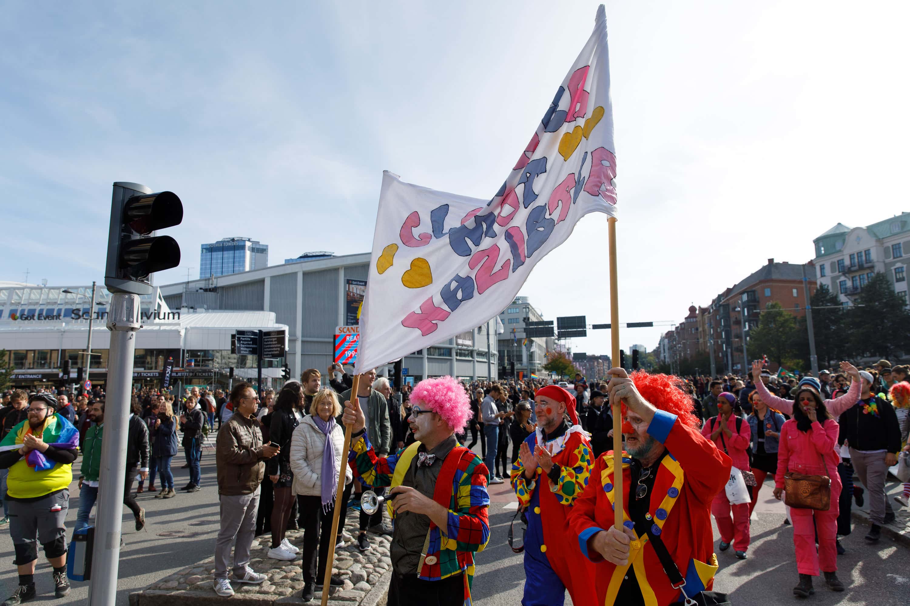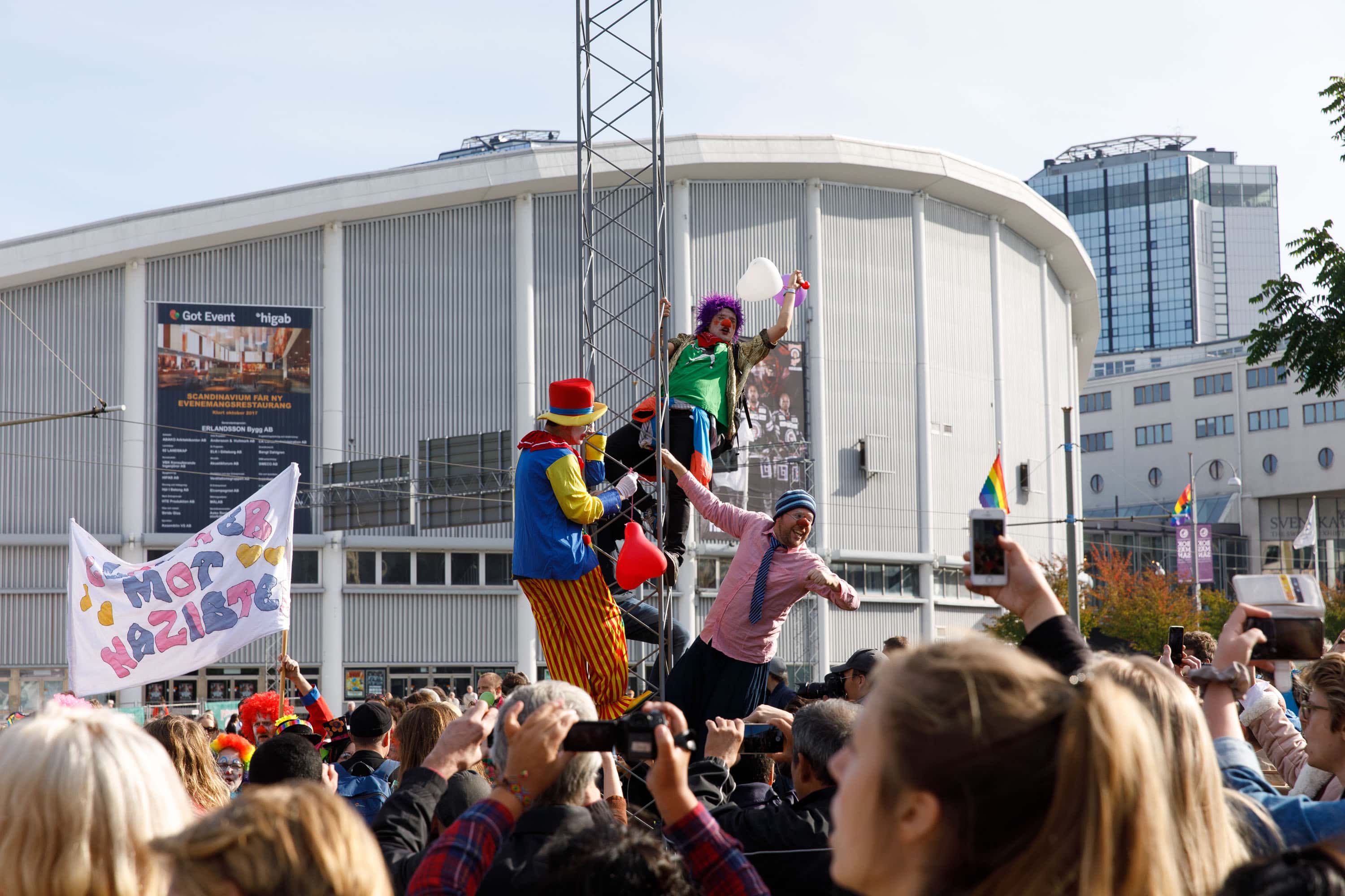 Under lördagen hölls ett dussintal olika demonstrationer mot nazistdemonstrationen i Göteborg. Vid Scandinavium samlades färgglada demonstranter under motton som “clowner mot nazister”, “jedis mot nazism” och “Nördfront”.