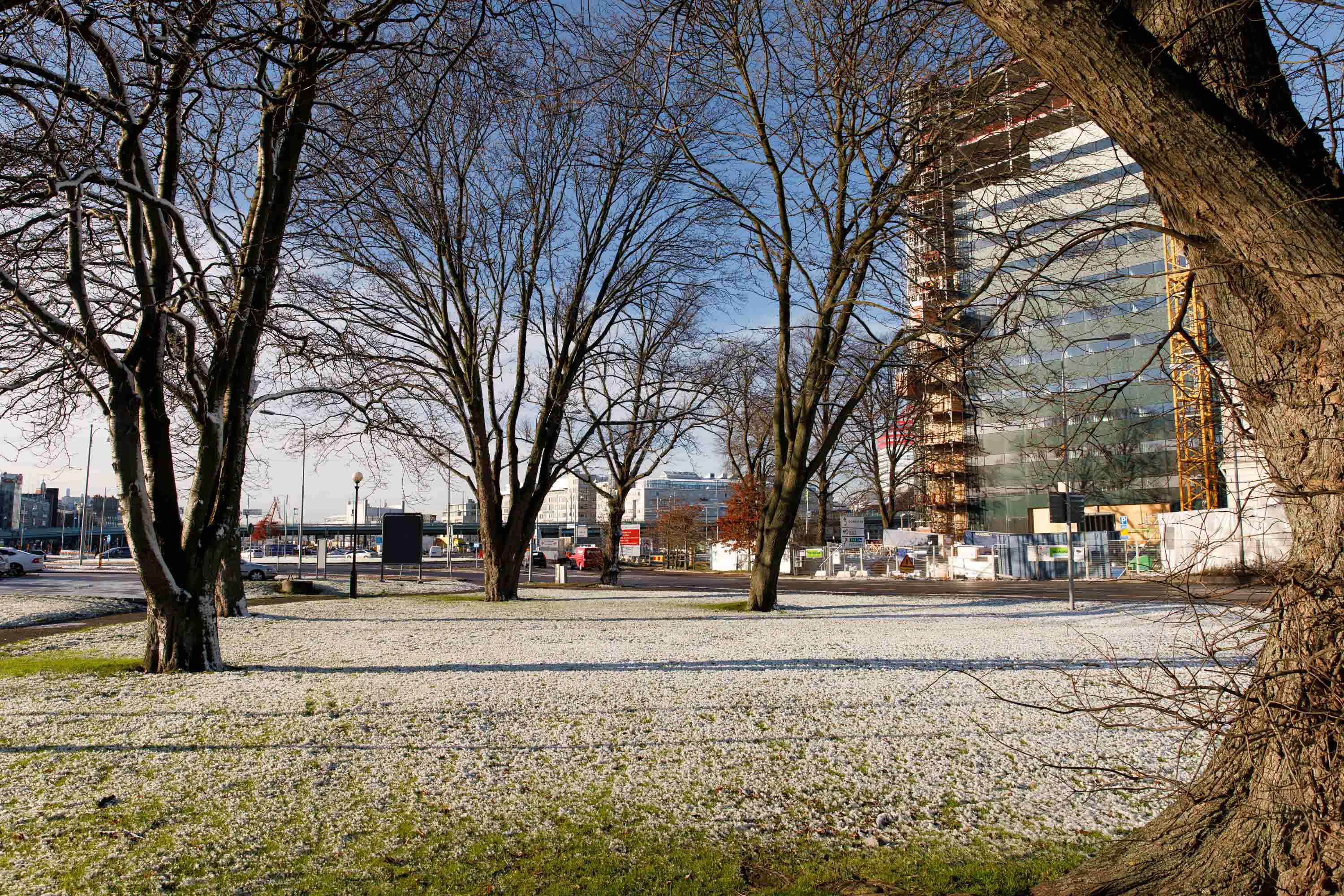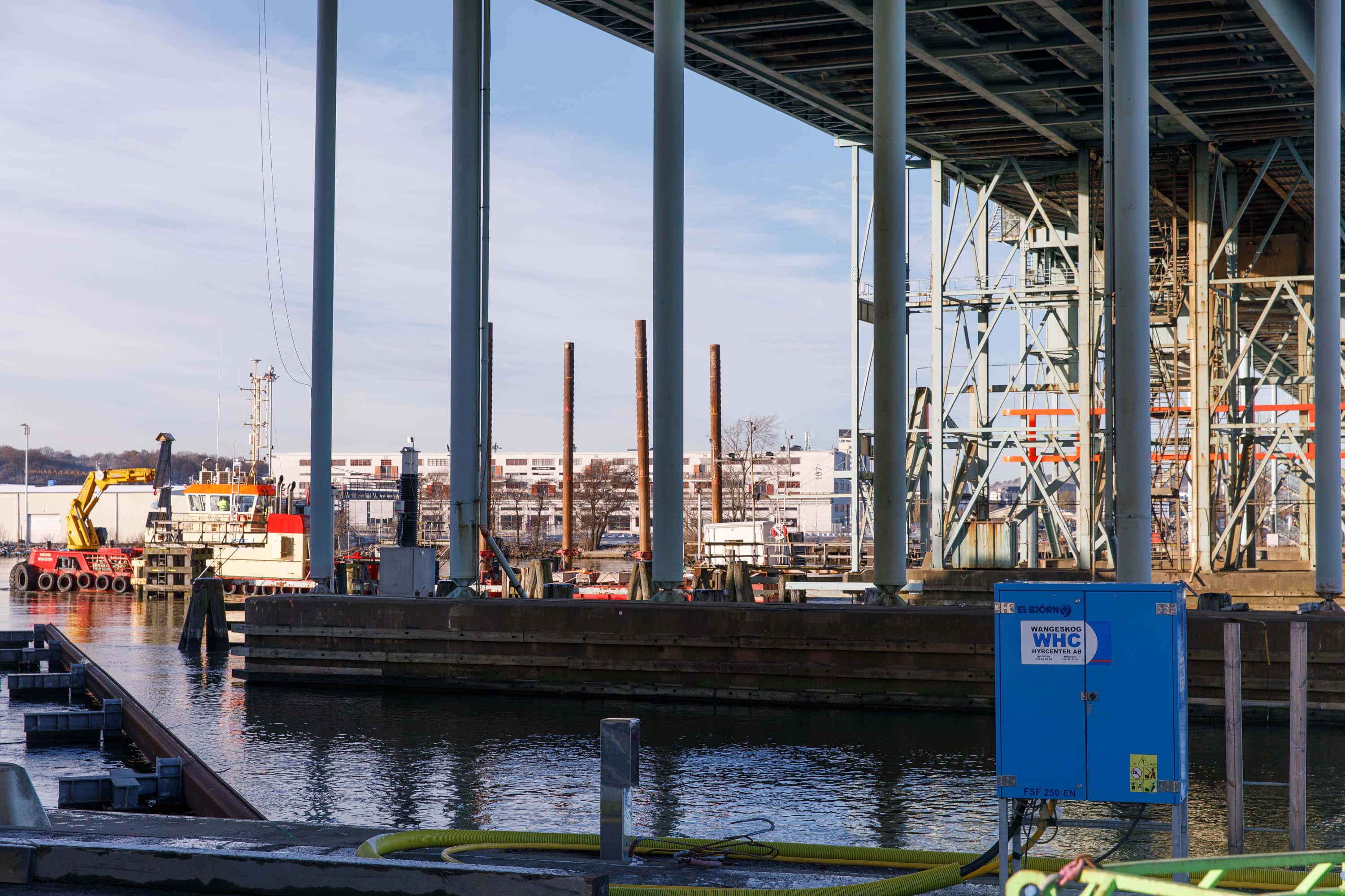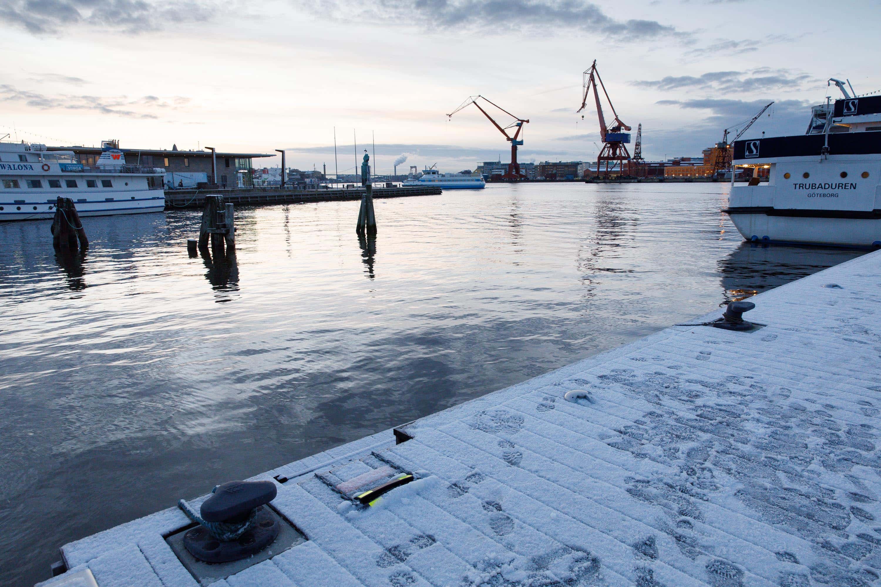 Göteborgs hamn en kylig dag under Västlänkens trädflytt. 21 november 2017. Foto: Chris Ceder