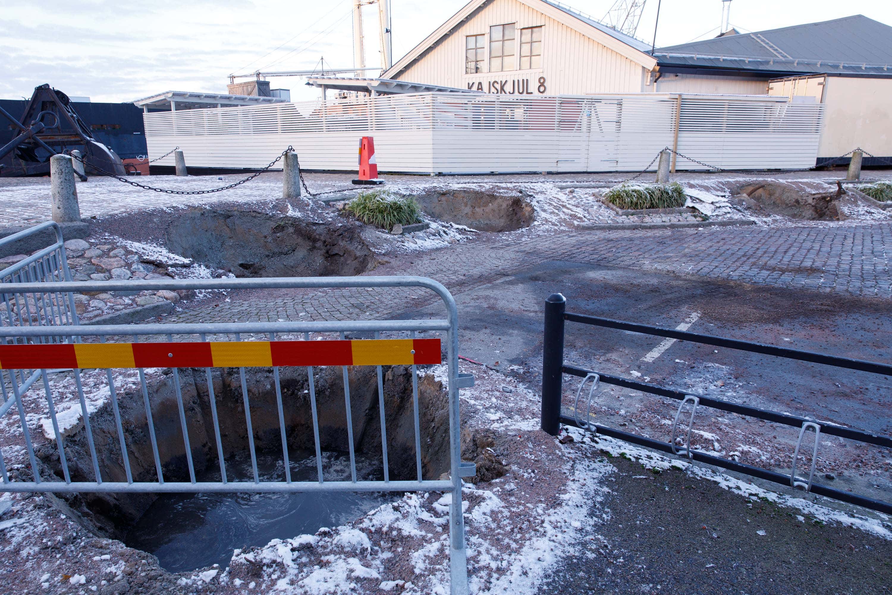 Hålen efter bortgrävda träd i samband med Västlänken i Göteborg. 21 november 2017. Foto: Chris Ceder