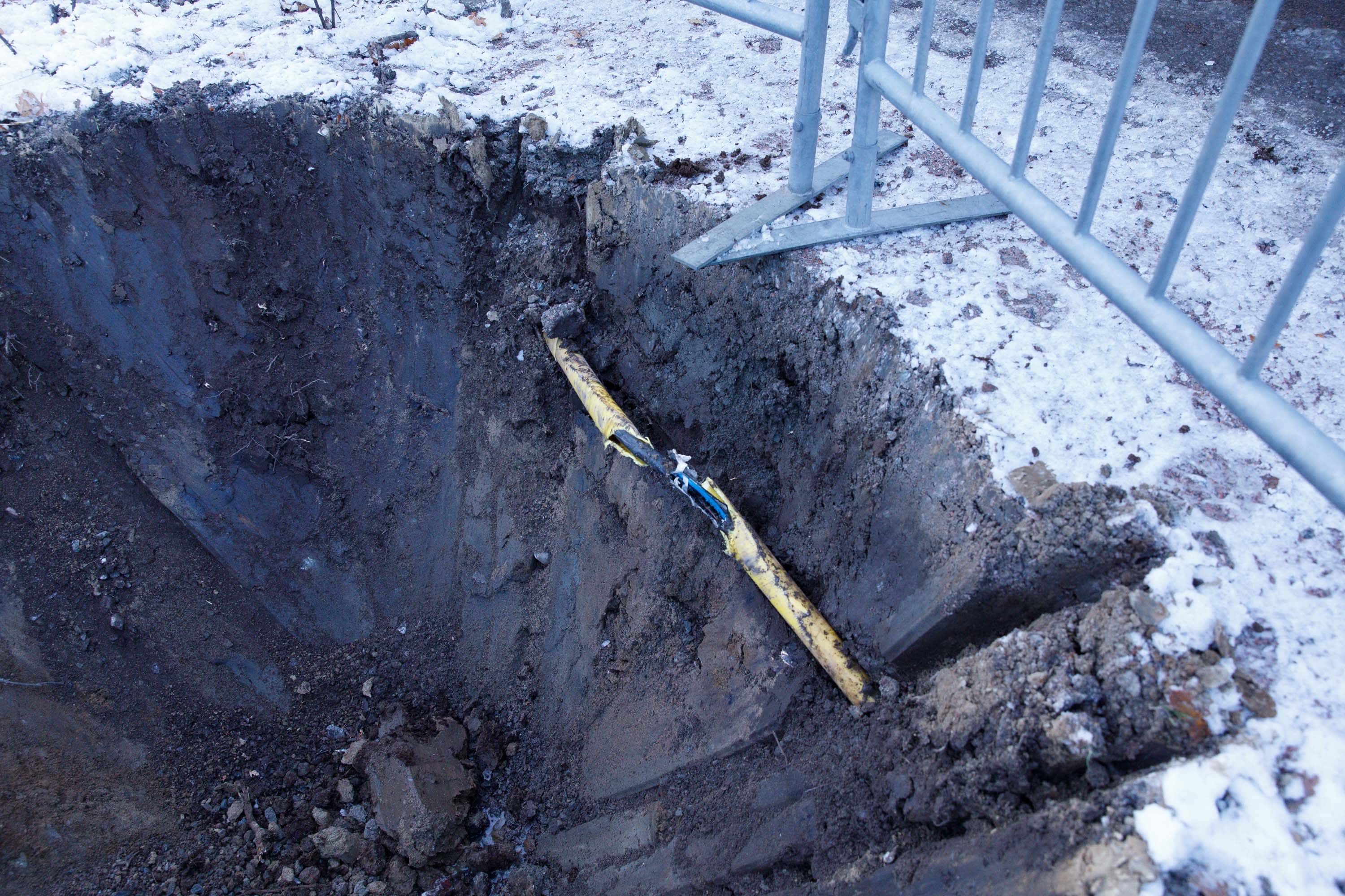 Avgrävd kabel under trädflytt i samband med Västlänken i Göteborg. 21 november 2017. Foto: Chris Ceder