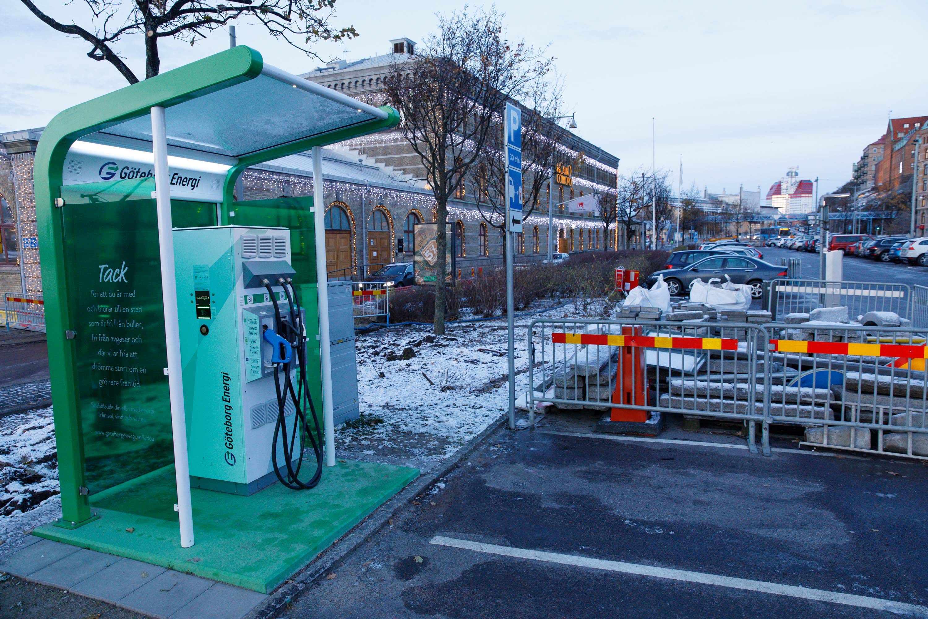 Tom laddningsstation. Elbillssatsning? 30 minuters laddning för 90 kr – I Tyskland är elbilspremien 40000 kr och parkeringen gratis. Foto: Chris Ceder
