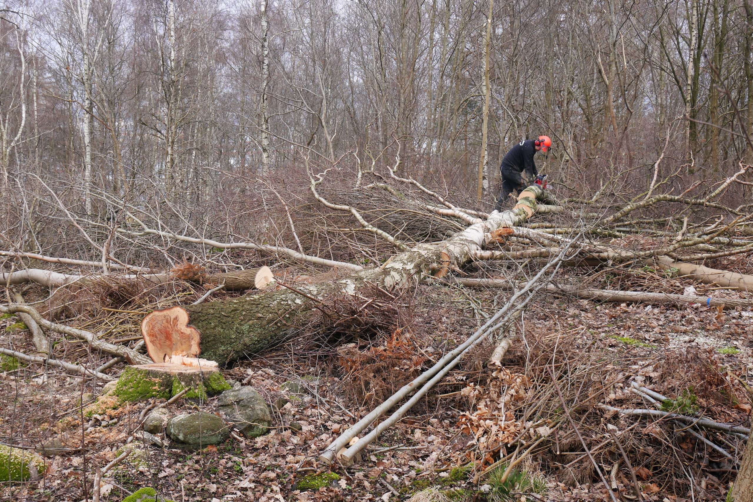 En grov björk har just fällts i Sisjön. Foto: Chris Ceder.