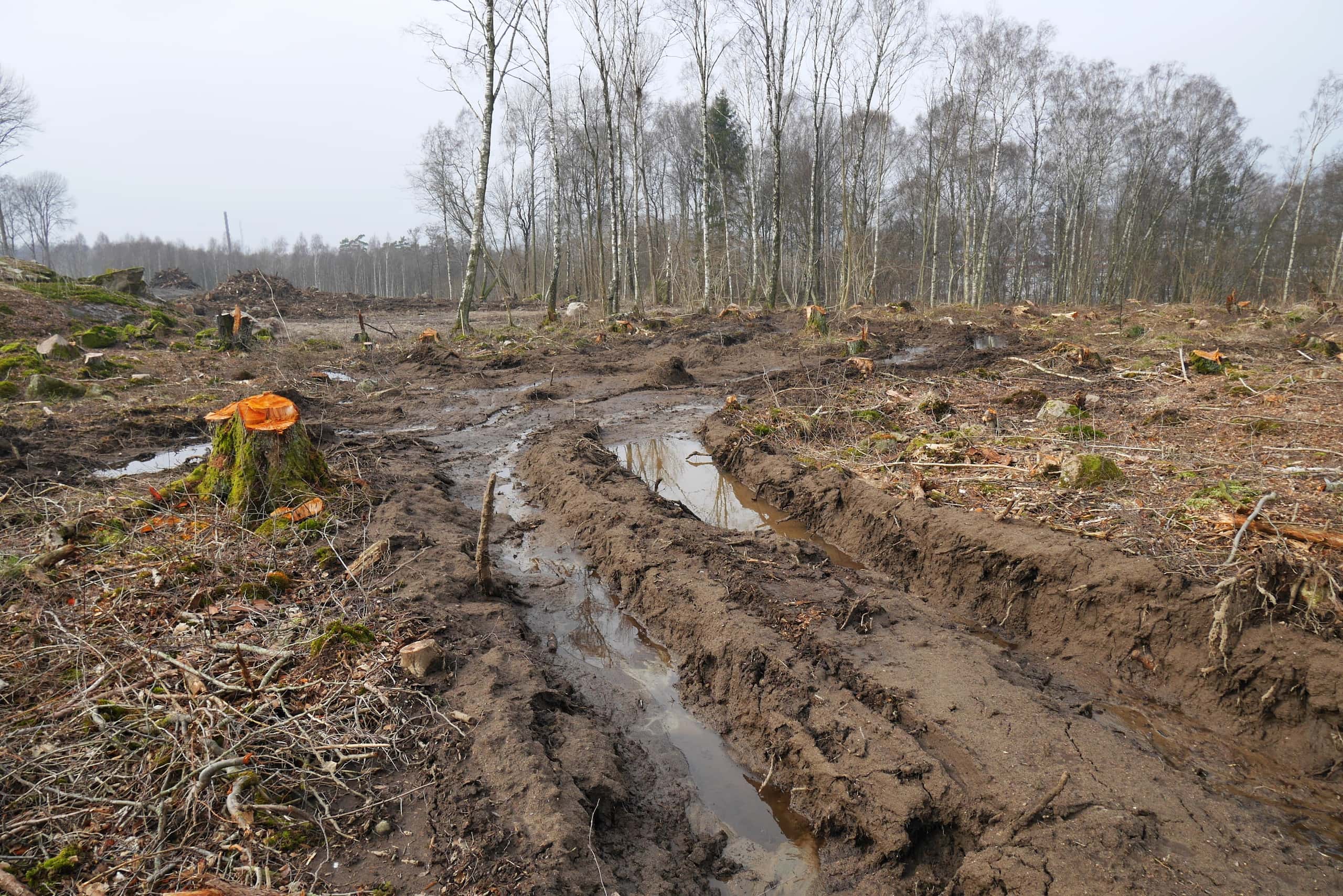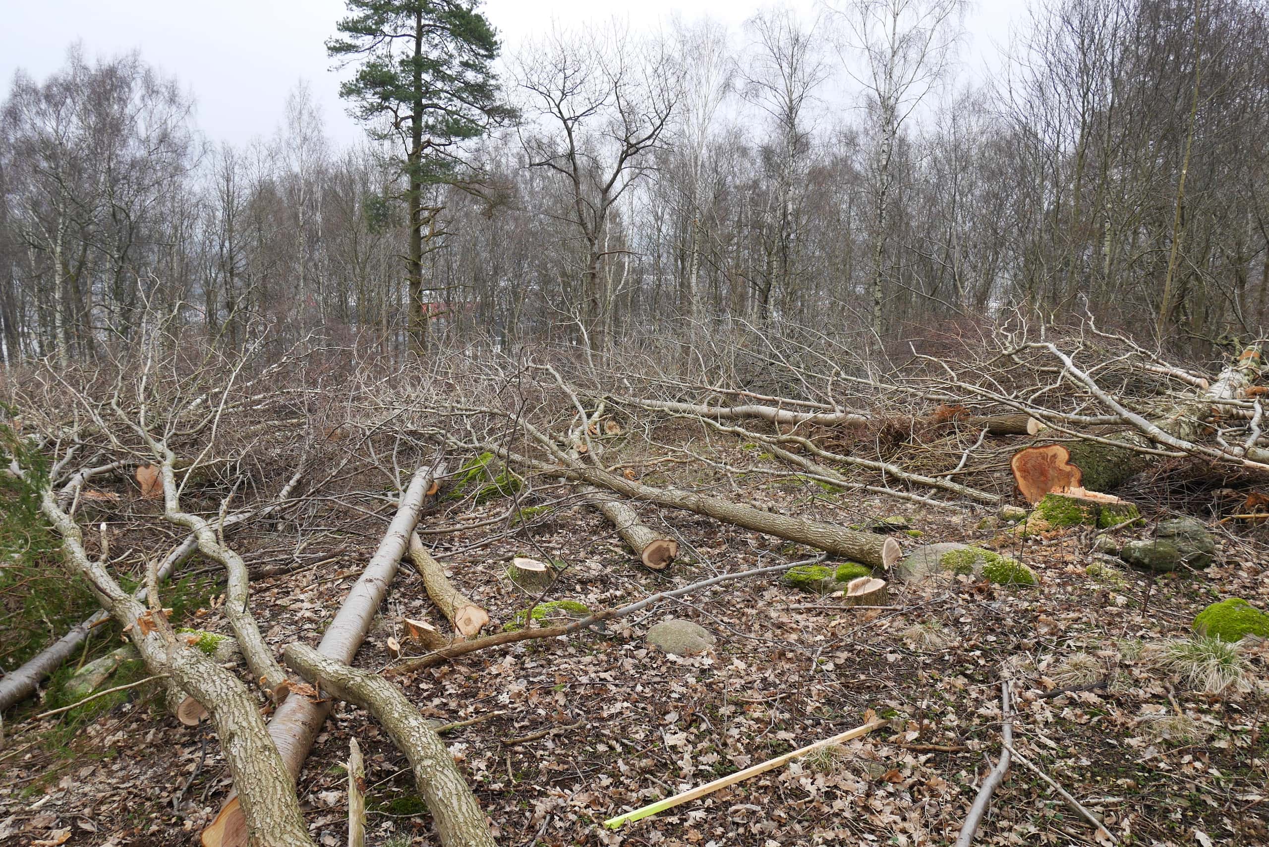 Tusentals träd väntar på bortforsling. Foto: Chris Ceder