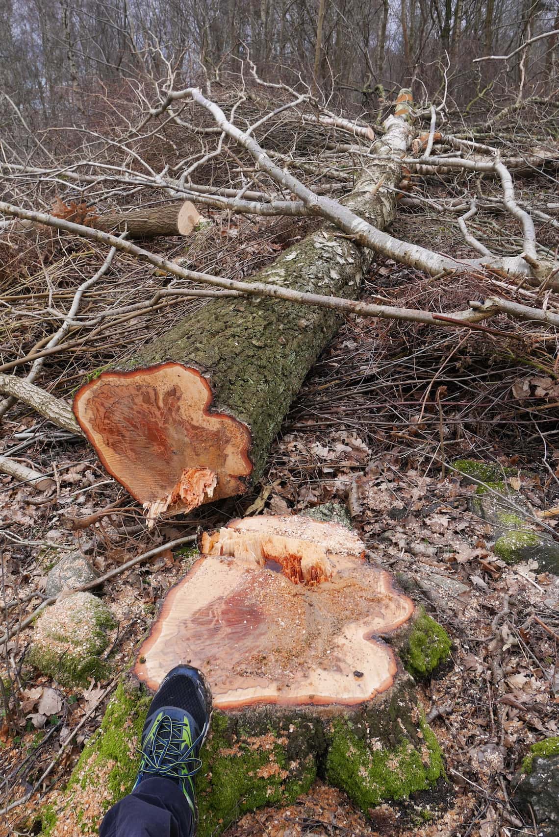 Ett av tusentals fällda träd i ekomassakern i Sisjön. Foto: Chris Ceder.