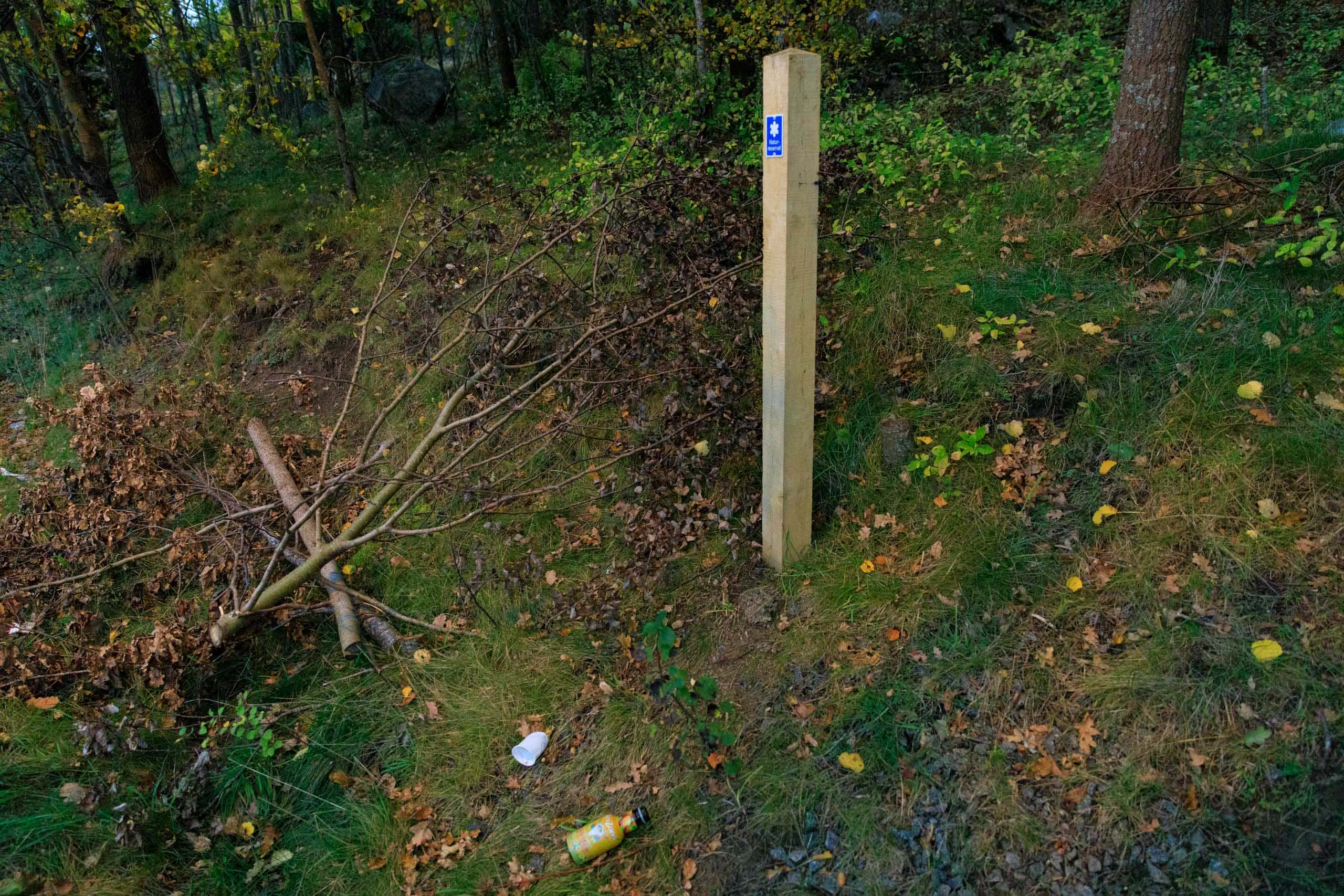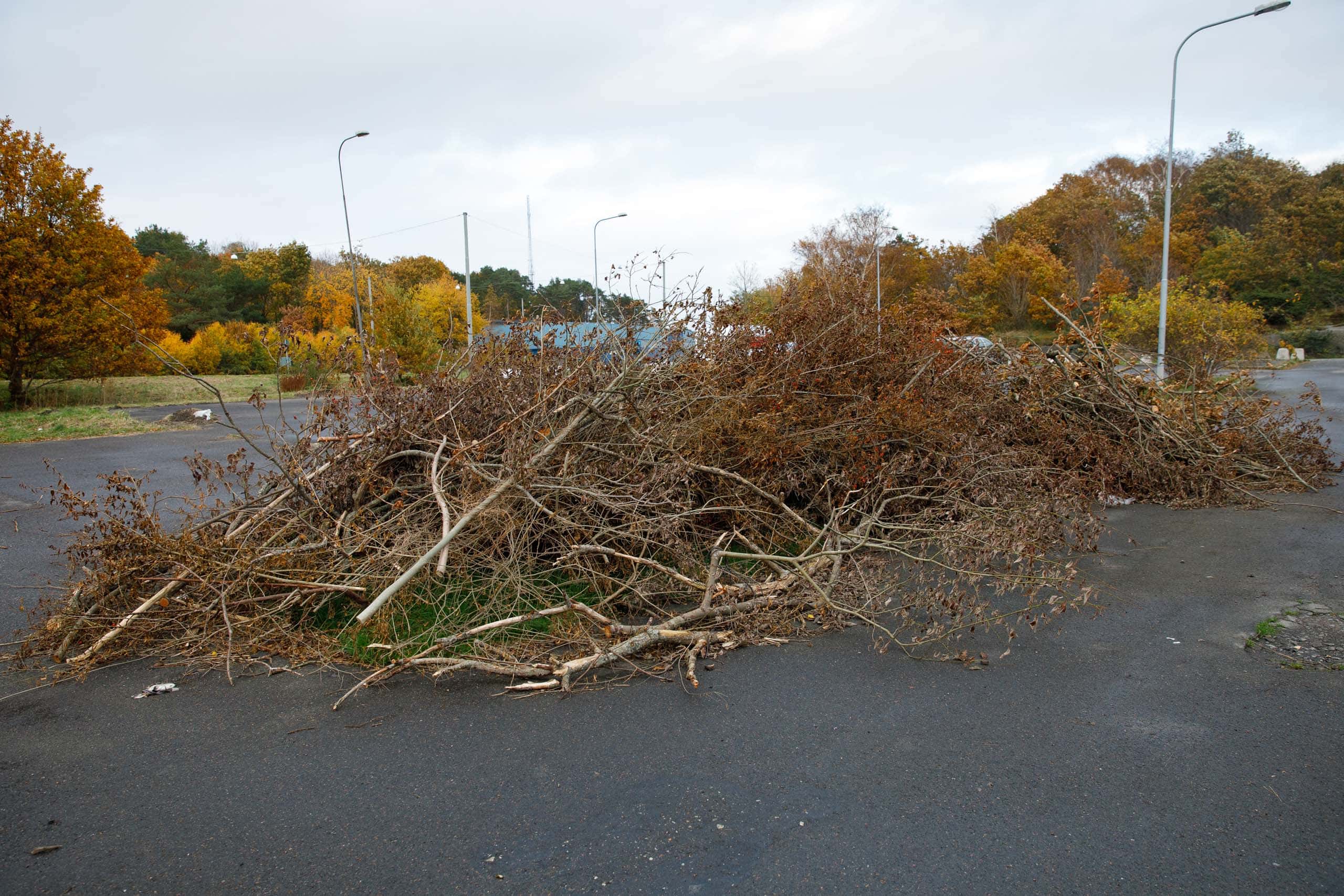 Bildspel 24 bilder: Natur och nedskräpning på Store Lund i Välens naturreservat, sälg fälld vid Välens idrottsplats