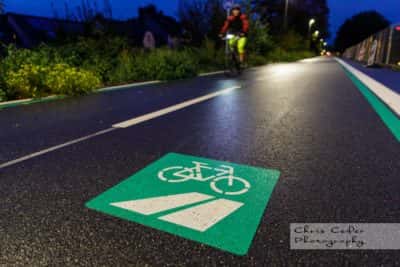 En färdig delsträcka av RS1 – Europas längsta cykelmotorväg, 101 km lång, som just nu byggs genom hela Ruhrområdet