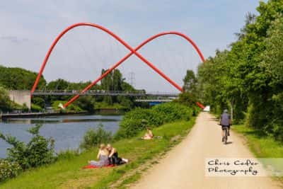 Erzbahntrasse, en spektakulär cykelväg som byggdes på den gamla malmbanan mellan det jättelika Kruppverket i Bochum och Rhein-Herne-kanalen.